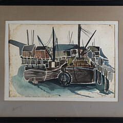 From the early ’50’s until his death, Andrew Shunney and his life-partner Charles Maguire wintered in Palm Beach, where Shunney was represented by the Palm Beach Galleries. They summered on Nantucket, where he first kept a studio on Straight Wharf, and later joined his peers, Ralph Cahoon, Polly & Bobby Bushong, Roy Baily, Irmgard Arvin, Nathaniel Benchley, Elizabeth Saltonstall and Mary Sarg-Murphy, at George Vigouroux’s Lobster Pot Gallery. By 1971 Shunney had earned a one man exhibition at the Hammer Galleries in NYC. His was an uncompromising quest for his own artistic voice, a distinguished career; a relevant body of work.