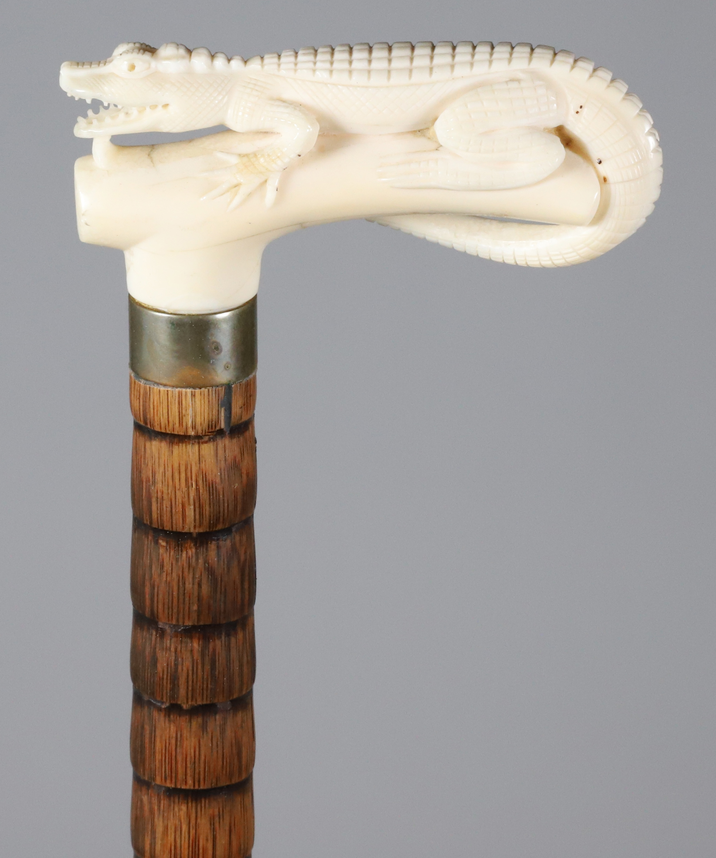 Antique Cane Depicting a Carved Alligator, 19th Century
