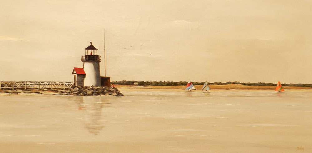 A Fine Roy Bailey Oil on Canvas “Sailing Round Brant Point,” signed lower right Bailey. 18 in. x 36 in.