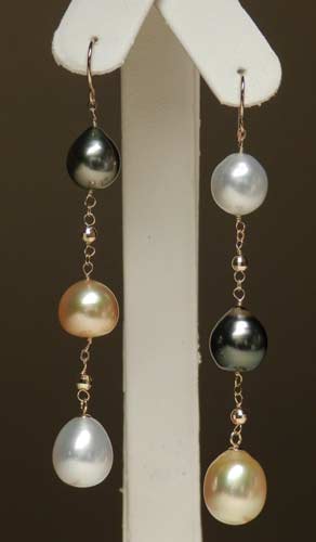 Pair of South Sea Pearl and 14k Yellow Gold Drop Earrings Consign Now DeptJewelry Pair of South Sea Pearl and 14k Yellow Gold Drop Earrings in shades of white, gold and black Please note that this auction has ended. Click here for an overview of this auction.