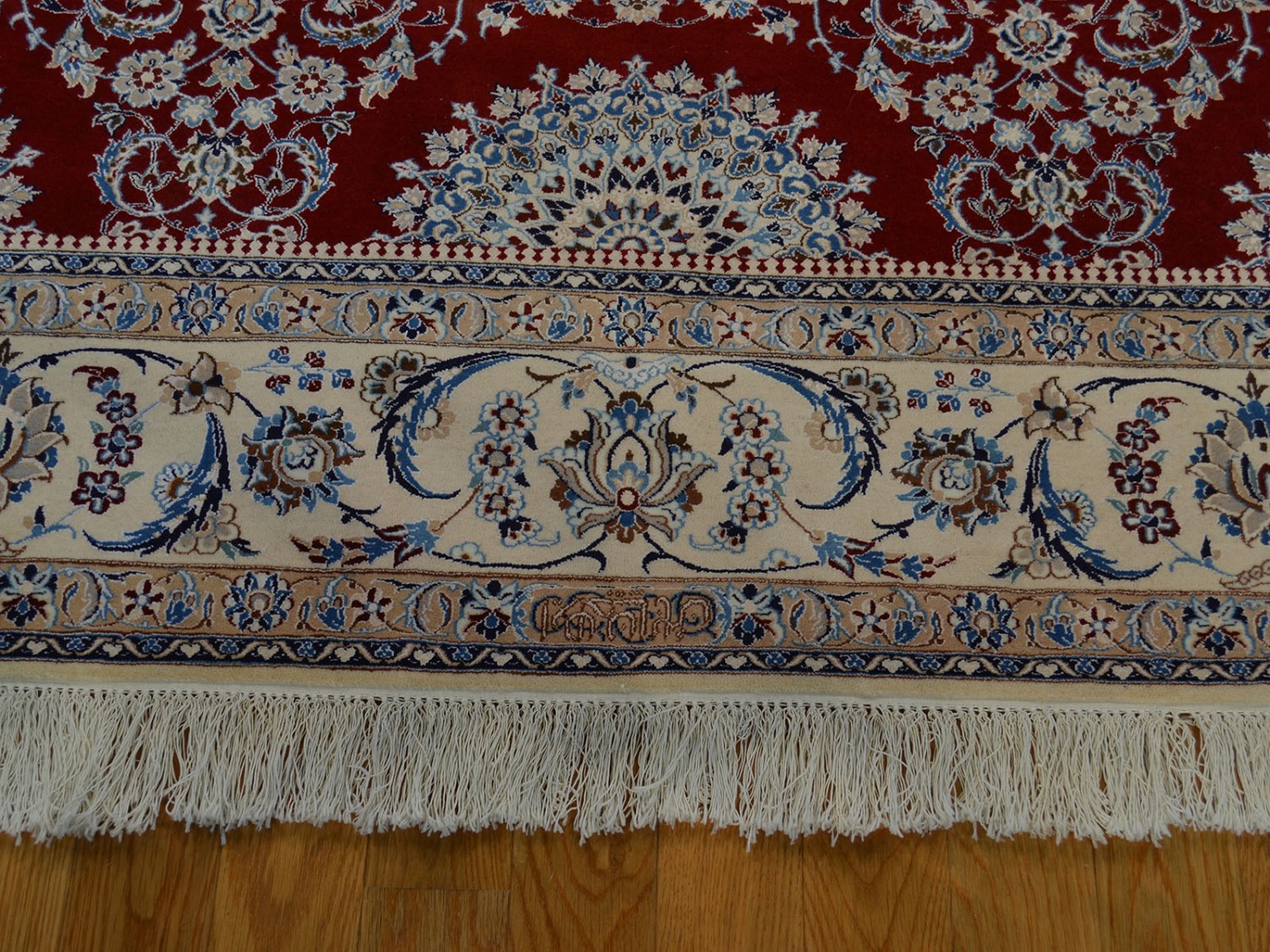 Signed Persian Nain Carpet Consign Now DeptCarpetsSize6 ft. x 9 ft. Signed Persian Nain carpet, hand knotted wool and silk. 6 ft. x 9 ft. Please note that this auction has ended. Click here for an overview of this auction.