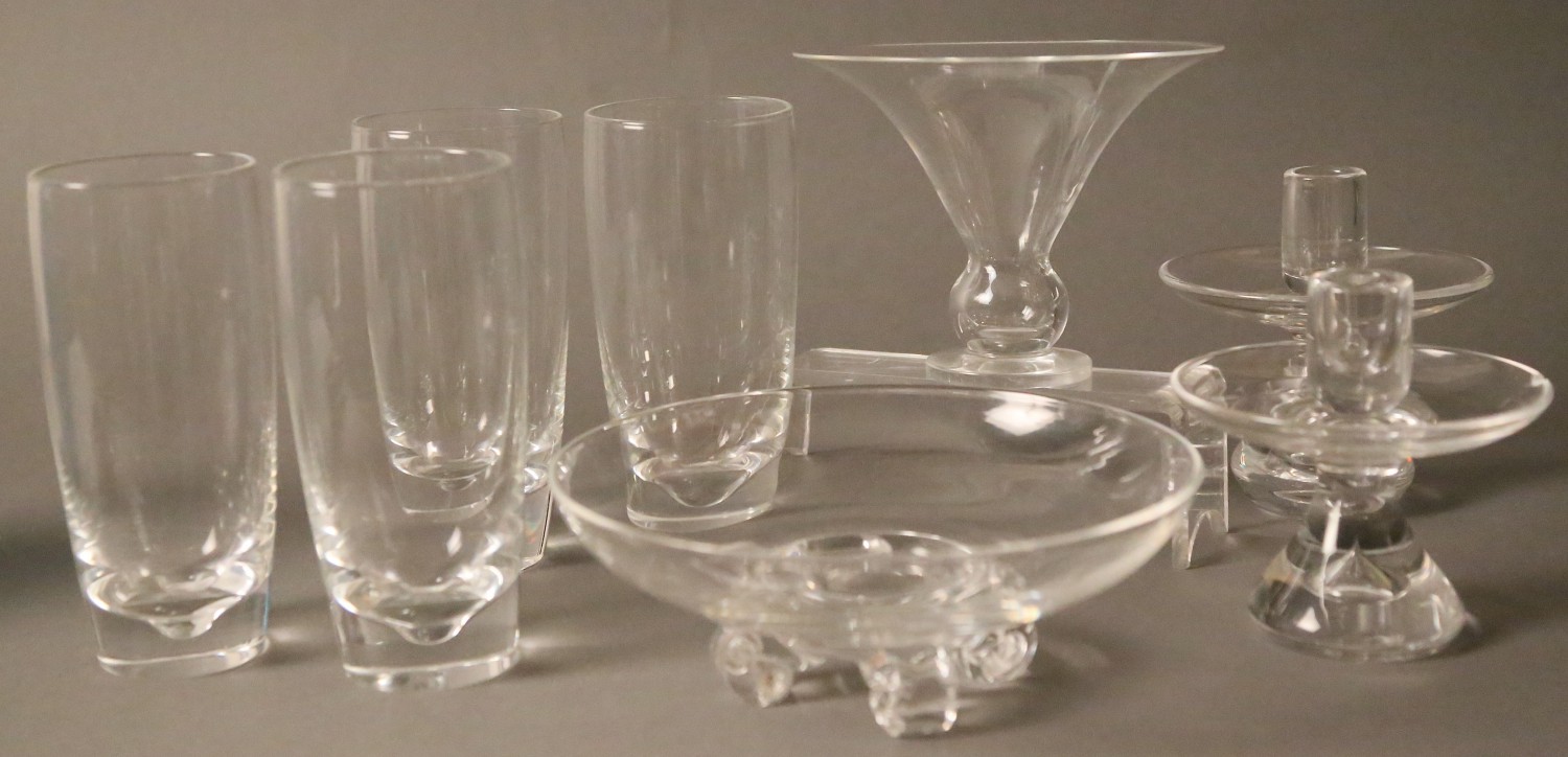 Collection of Steuben Glass Consign Now Dept20th Century Design An Assortment of Signed Steuben Glass: highballs, vase, candlesticks and footed bowl Please note that this auction has ended. Click here for an overview of this auction.