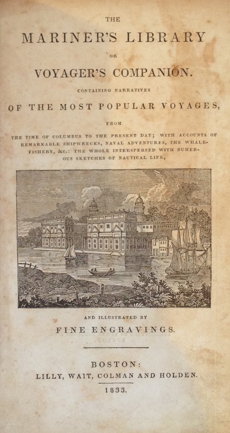 The Mariner’s Library or Voyager’s Companion Consign Now The Mariner’s Library or Voyager’s Companion, Published Boston: Lilly, Wait, Colman & Holden, 1833, rebound in red leather, containing an early printing of the story of the Essex. Please note that this auction has ended. Click here for an overview of this auction.