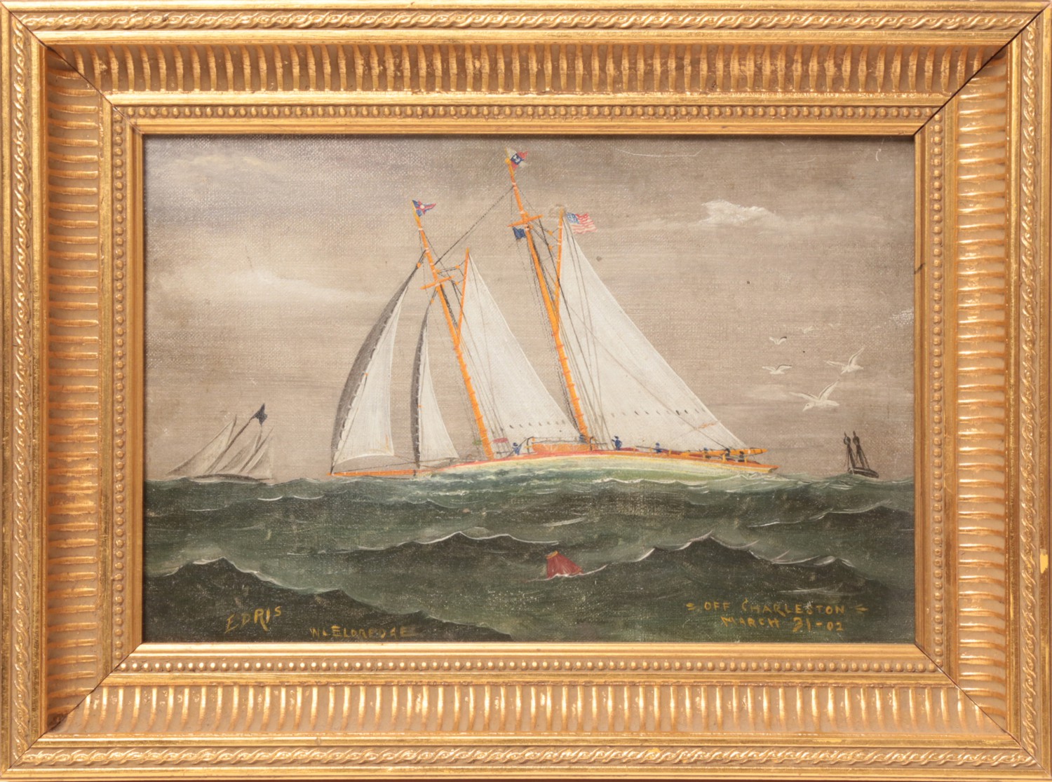 W.C. Eldredge Oil on Canvas “Seascape of the Two Masted Schooner Edris”