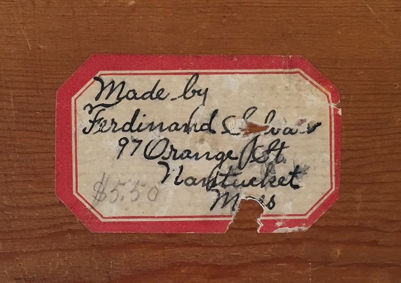 Ferdinand Sylvaro Nantucket Basket Consign Now DeptNantucket BasketsSizeHeight 7 ¾ in. Diameter 11 ¼ in. Ferdinand Sylvaro (1868-1952) Large Round Open Swing Handle Nantucket Basket, with original paper label on base “Made by Ferdinand Sylvaro 97. Orange St. Nantucket, Mass”, hand written in pencil on label $5.50. Height 7 ¾ in. Diameter 11 ¼ in. Please note that this auction has ended. Click here for an overview of this auction.