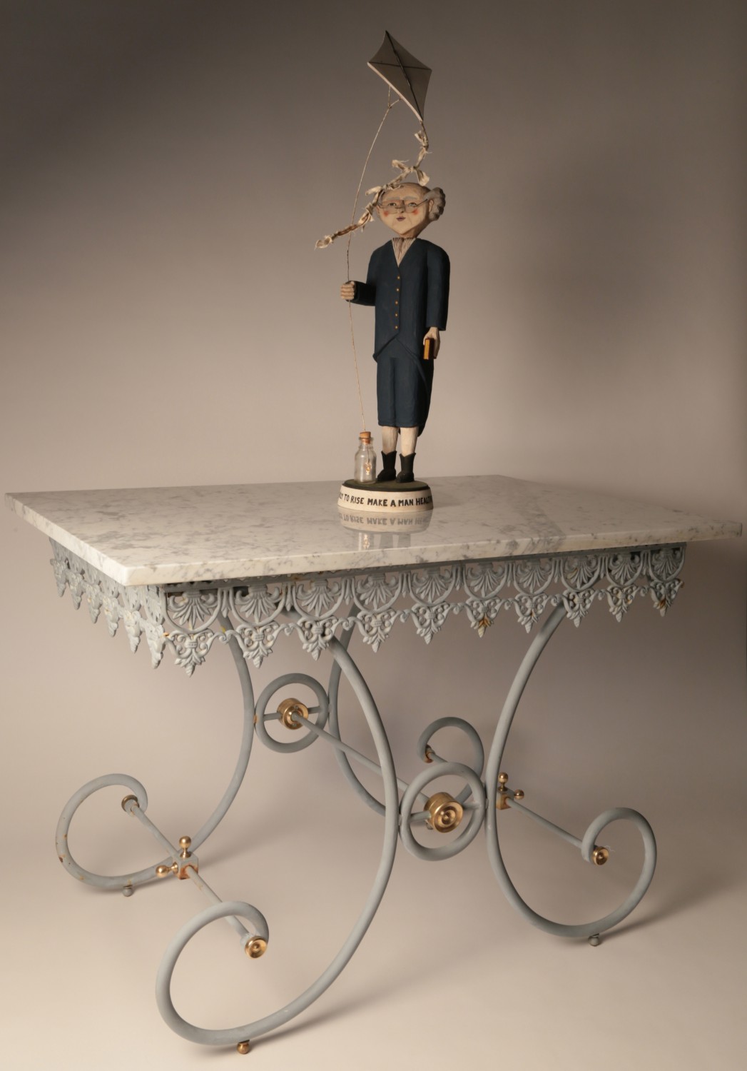 Chris Flesher — American Folk Art Wood Carving of Ben Franklin, signed upon the base Chris Flesher, ’95.