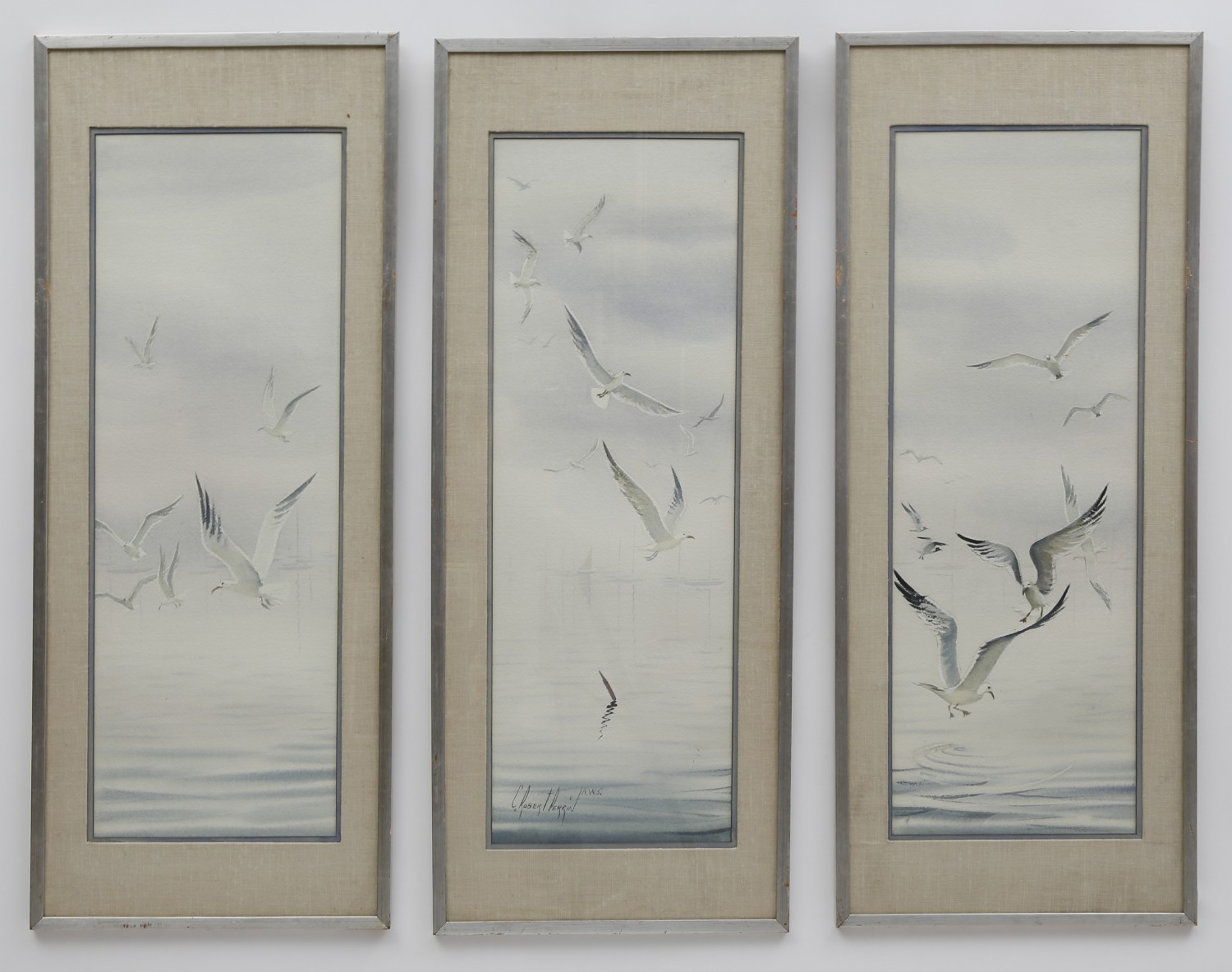 Charles Robert Perrin Watercolor on Paper Triptych “Seagulls Over a Foggy Harbor” Consign Now DeptNantucket ArtSizeEach Panel 36 ¾ in. x 14 ¾ in. Charles Robert Perrin (1915-1999) Watercolor on Paper Triptych “Seagulls Over a Foggy Harbor,” signed lower left. Each Panel 36 ¾ in. x 14 ¾ in. Please note that this auction has ended. Click here for an overview of this auction.