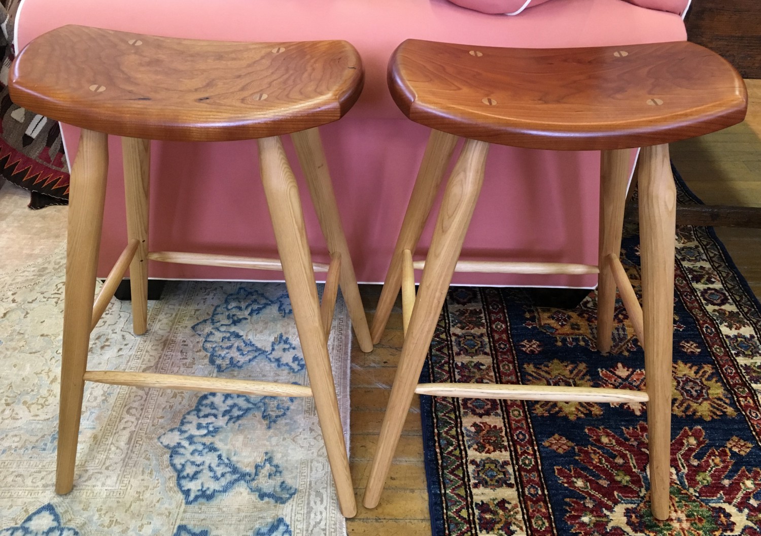 Pair of Stephen Swift Cherry and Ash Bar StoolsPair of Stephen Swift Cherry and Ash Bar Stools