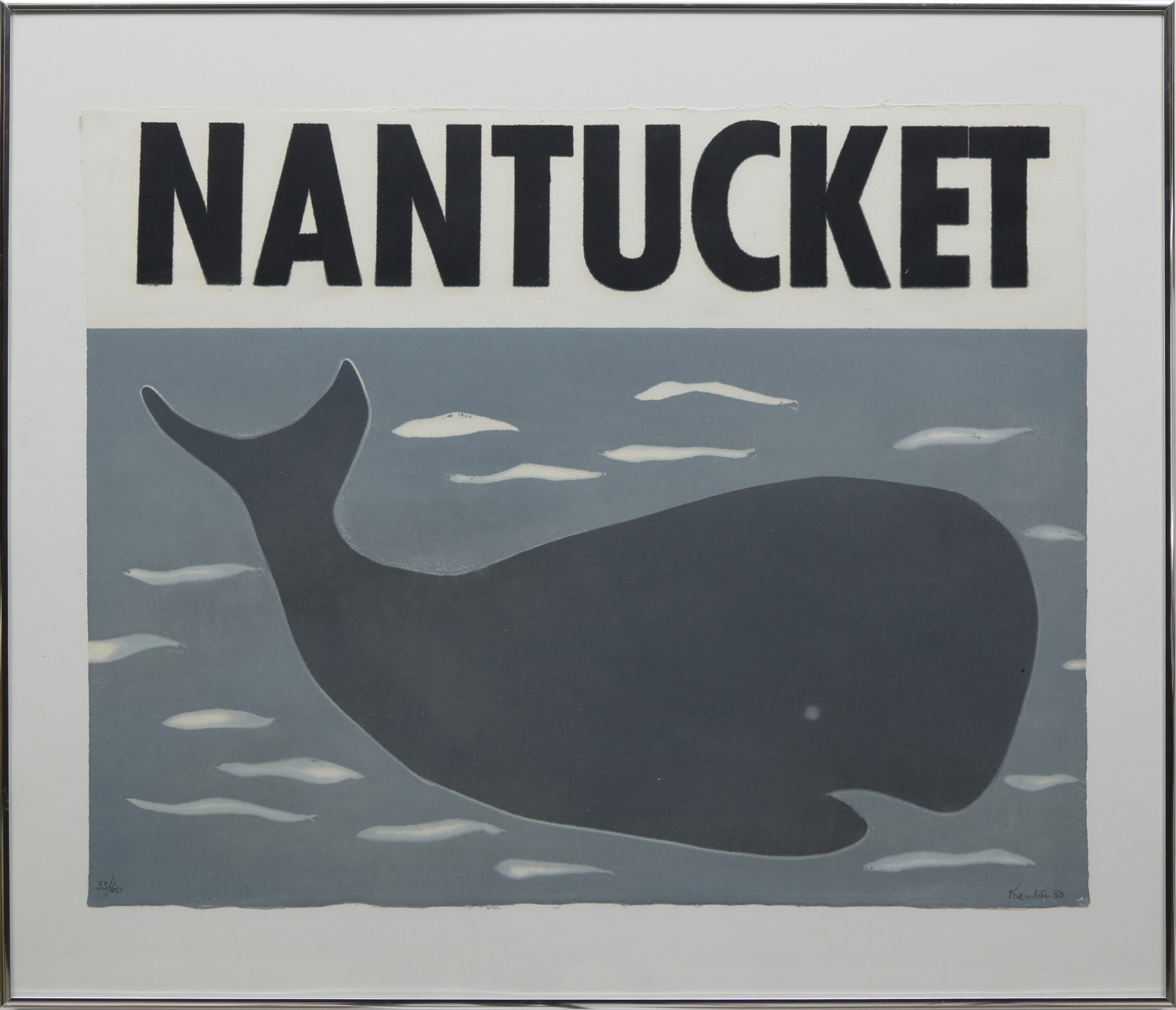 Richard Kemble (1932-2007) Woodcut “Nantucket Whale,” signed and dated ’80 lower right, numbered #33/100 and titled lower left.