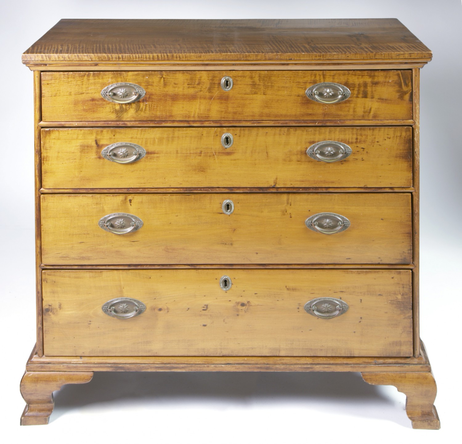 19th Century Tiger Maple Four-Drawer Chest Consign Now DeptJewelrySizeHeight 36 in. Width 38 in. Depth 20 in. 19th Century Tiger Maple Four-Drawer Chest, four graduating drawers on ogee bracket feet. Height 36 in. Width 38 in. Depth 20 in. Please note that this auction has ended. Click here for an overview of this auction.