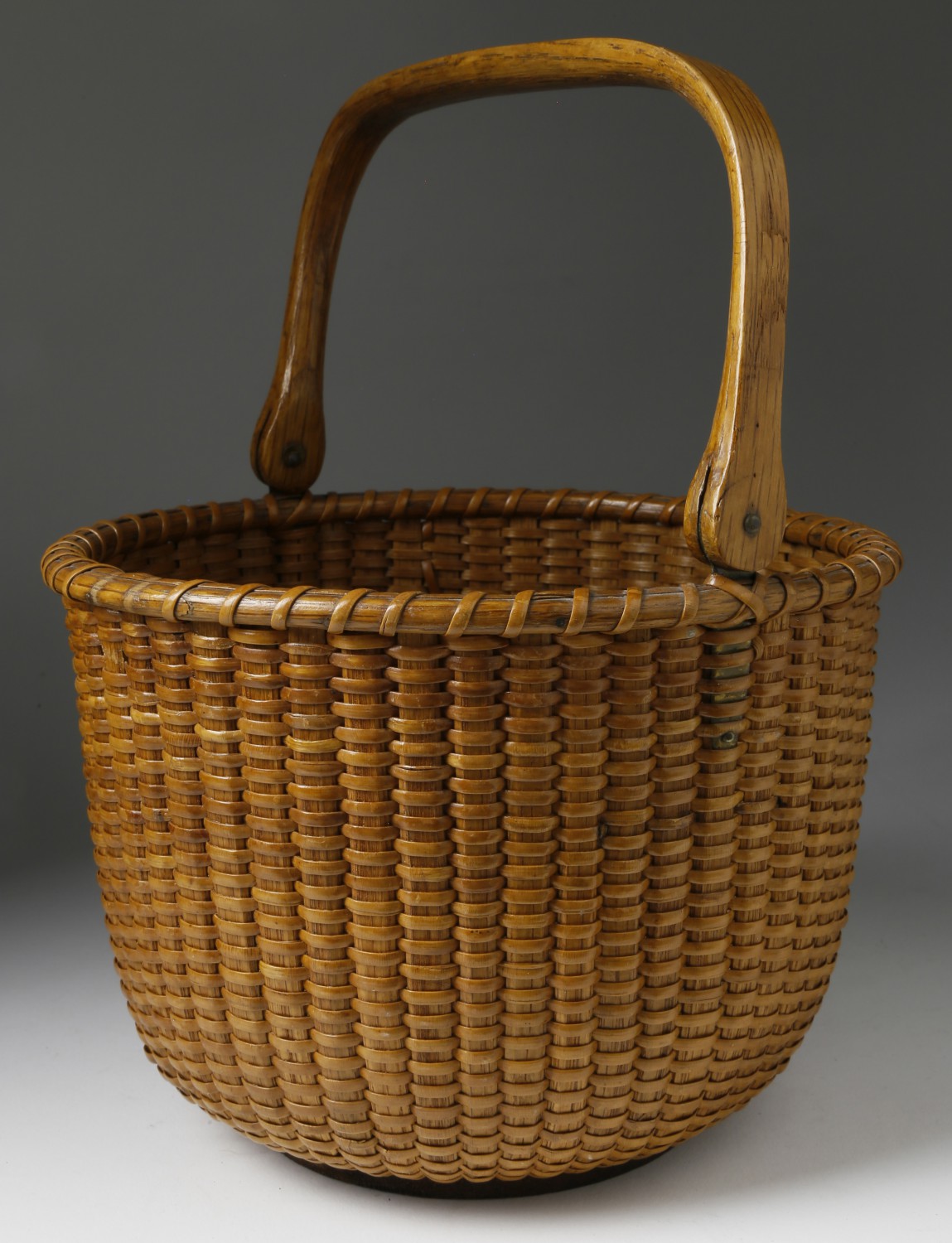 Round Open Swing Handle Nantucket Basket Consign Now DeptNantucket BasketsSizeHeight 5 in. Diameter 7 in. Lot 188. Round Open Swing Handle Nantucket Basket, with brass ear, circa 1920. Height 5 in. Diameter 7 in. Provenance: From the Clara Hayes Barrett Nantucket Basket Collection Please note that this auction has ended. Click here for an overview of this auction.