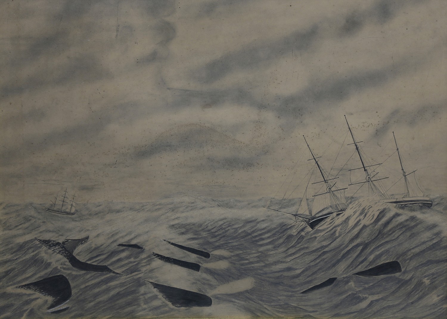 American School, 19th Century, Ink and Graphite on Paper “Sperm Whaling Scene: Two Ships Closing in on a Pod of Whales” Consign Now DeptFine Arts, Maritime ArtsSize17 in. x 22 in. Overall: 28 ½ in. x 33 in. American School, 19th Century, Ink and Graphite on Paper “Sperm Whaling Scene: Two Ships Closing in on a Pod of Whales“, in period carved wood frame with gilt slip. Sight: 17 in. x 22 in. Overall: 28 ½ in. x 33 in. Please note that this auction has ended. Click here for an overview of this auction.