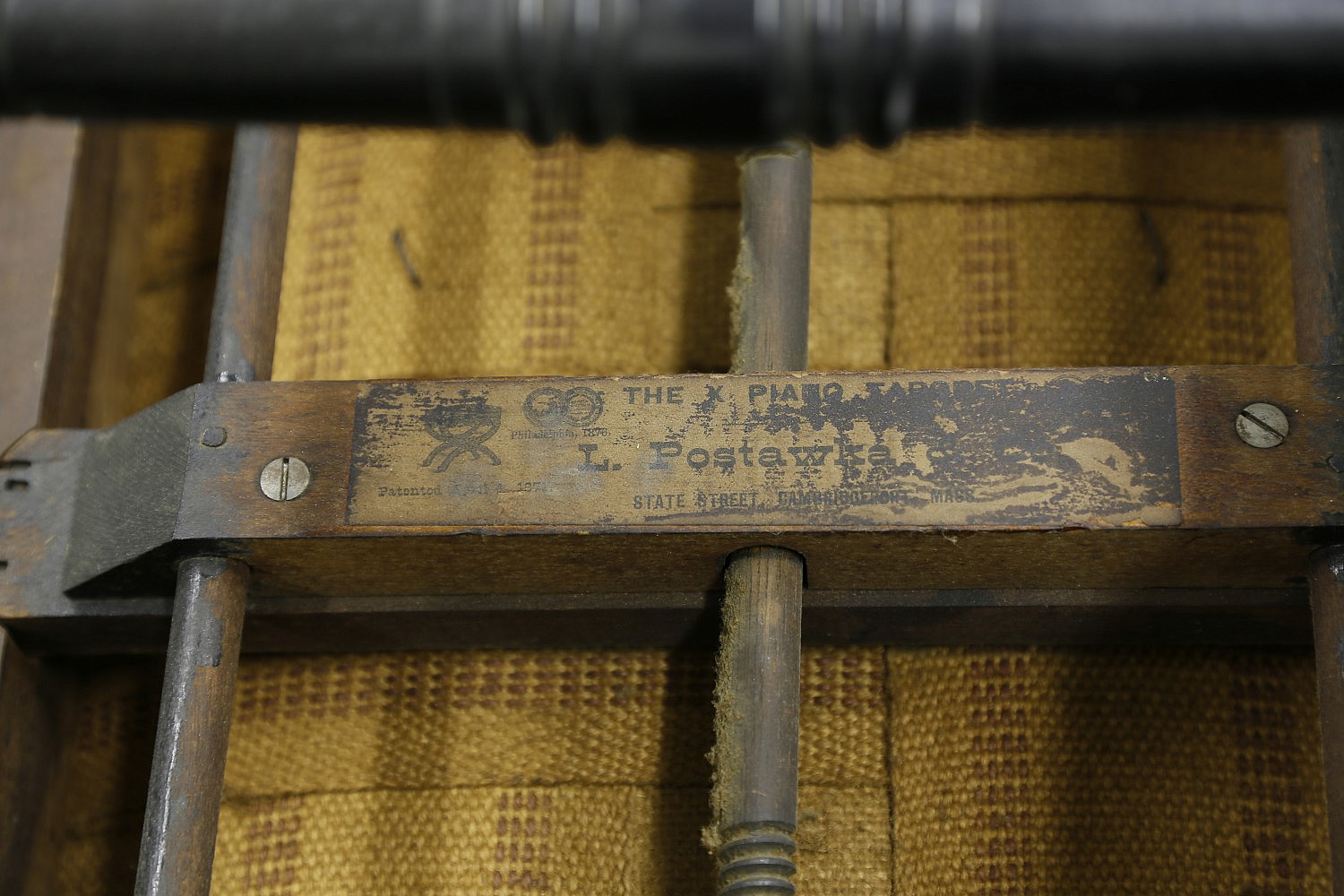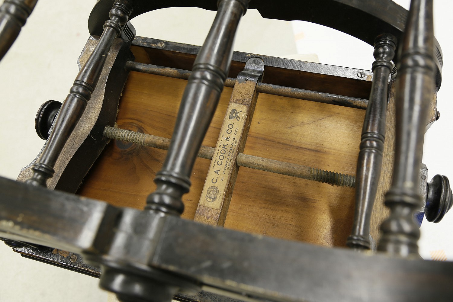 One label reads: “The X-Tabouret, Patented April 4, 1871, L. Postawka, State Street, Cambridgeport Mass.”