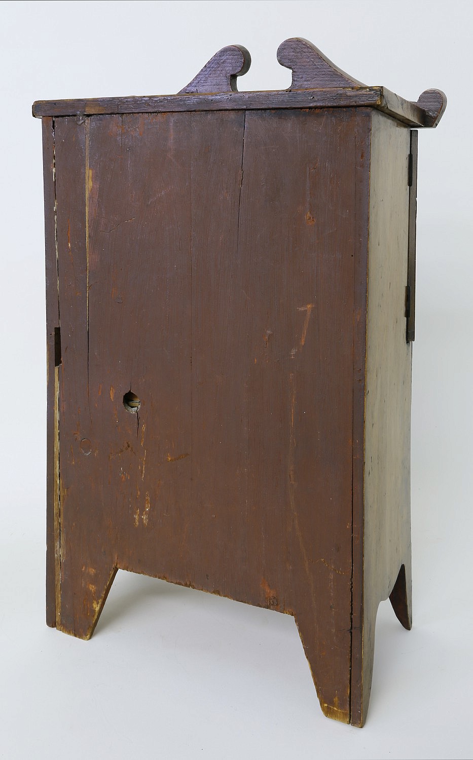 Late Georgian Inlaid Mahogany Miniature Secretary, 1st half of the 19th century, of upright rectangular form with broken pediment above pair of doors enclosing an arrangement of six small drawers flanking a mirror-backed recess; the lower partium with two short over two long drawers above scalloped apron continuing to bracket feet.