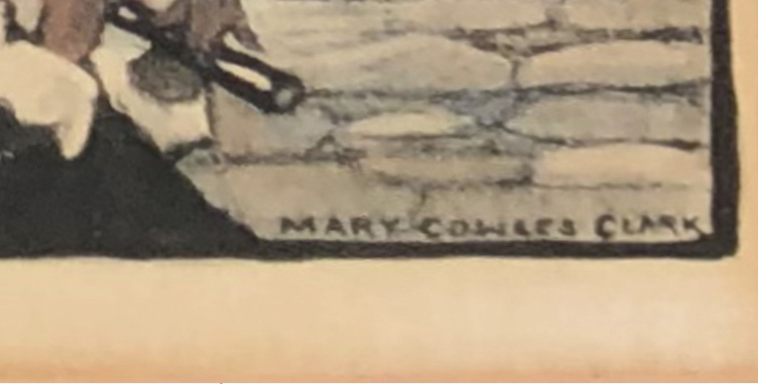 Mary Cowles Clark (1871-1950) Colored Lithograph “Stone Alley”, signed lower right.