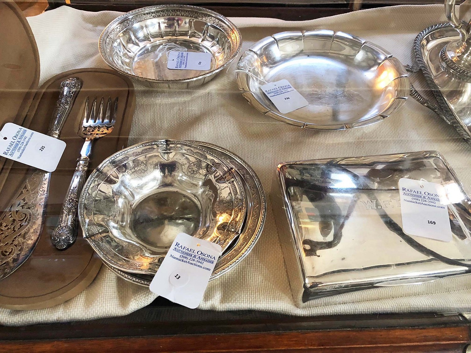 A Variety of Sterling Silver Bowls and Box, Silver Plated Fish Knife and Fork
