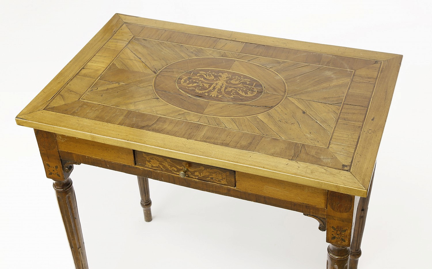Continental Neoclassical One Drawer Inlaid Side Table Consign Now DeptFurniture/Decorative ArtsSizeHeight 28 in. Width 29 in. Depth 18 ½ in. Continental Neoclassical One Drawer Inlaid Side Table, 19th Century, with stop fluted legs Height 28 in. Width 29 in. Depth 18 ½ in. Please note that this auction has ended. Click here for an overview of this auction.