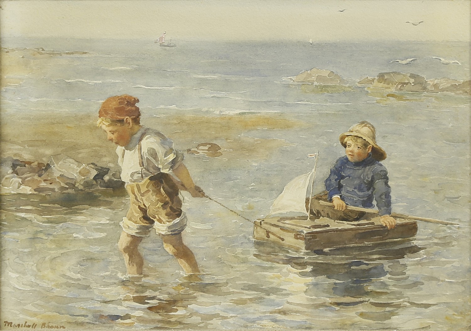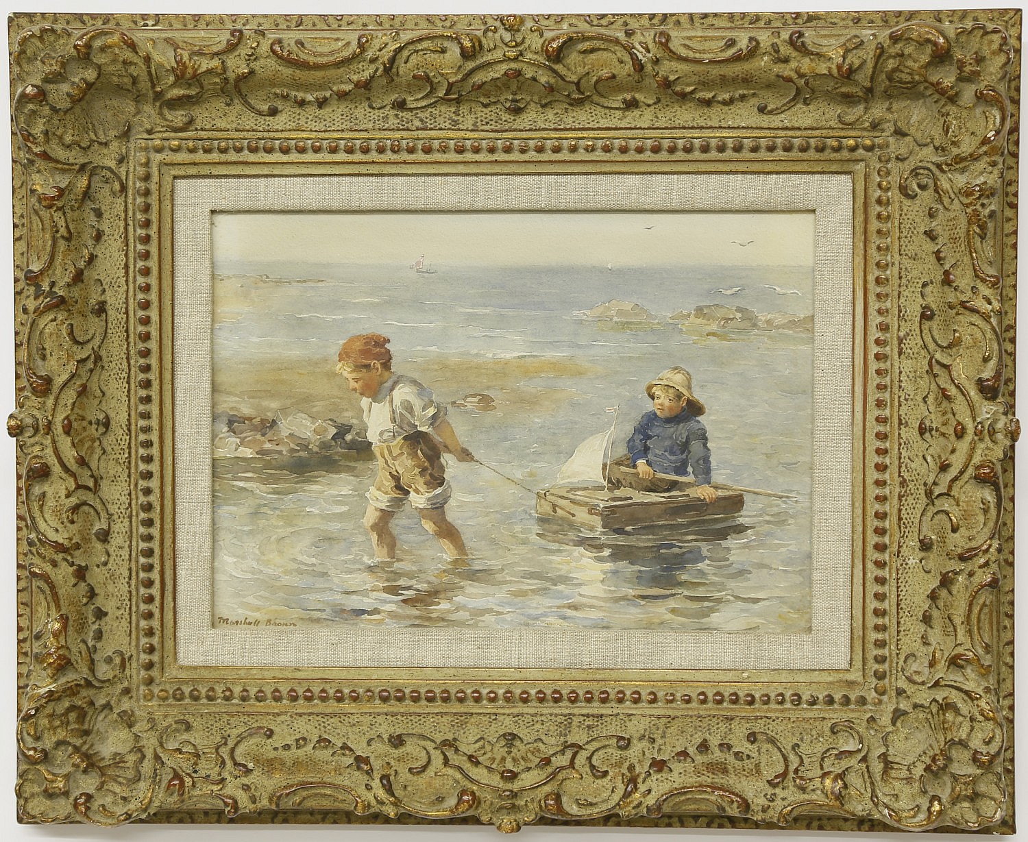 Marshall Brown (English 1863-1936) Watercolor on Paper, “The Raft”, signed lower right Marshall Brown