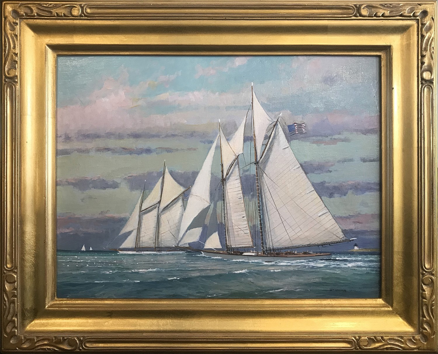 William W. Lowe (American b. 1940) Oil on Linen “Yachts Under Full Sail”, signed lower right.