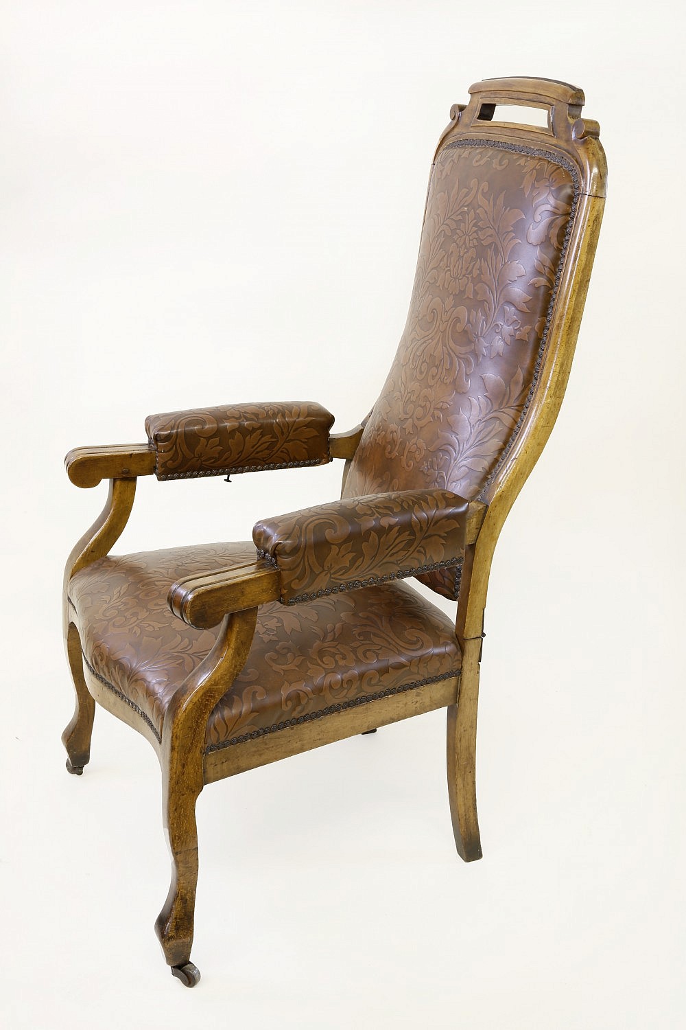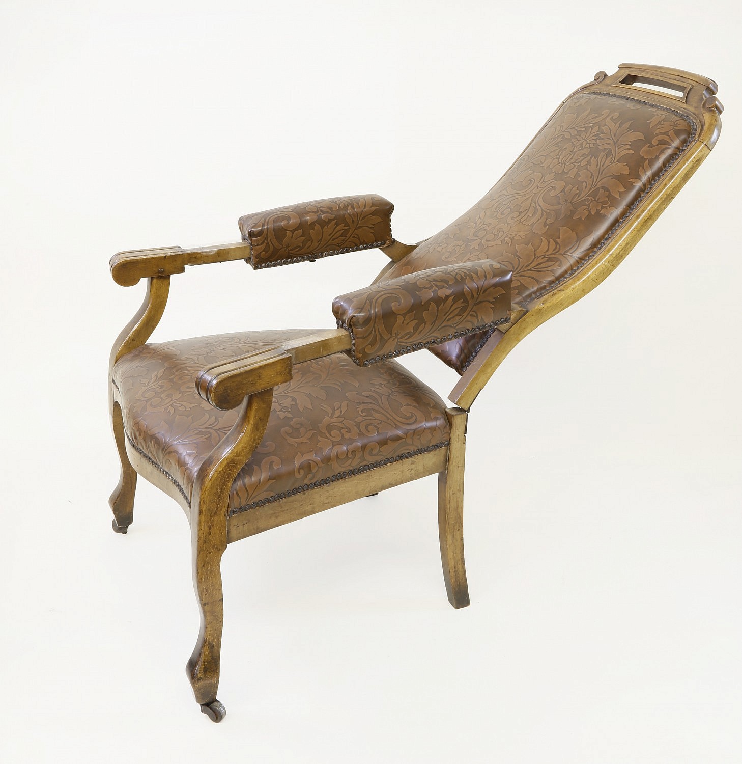 Carved and Upholstered Reclining Dentist Open Armchair, 19th Century