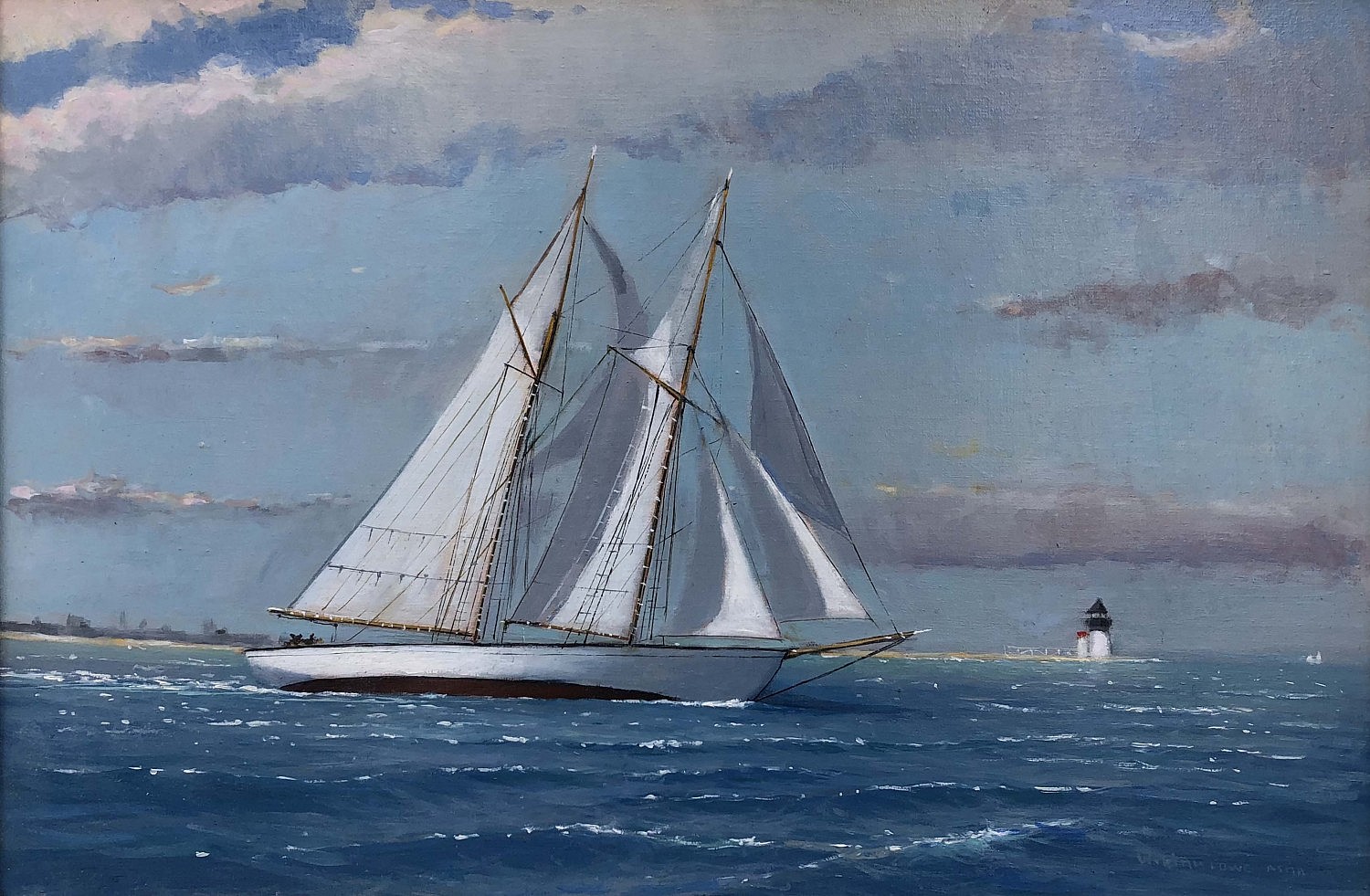 William Lowe (American b. 1940) Oil on Canvas “Departing Nantucket Harbor”, signed lower right William Lowe ASMA