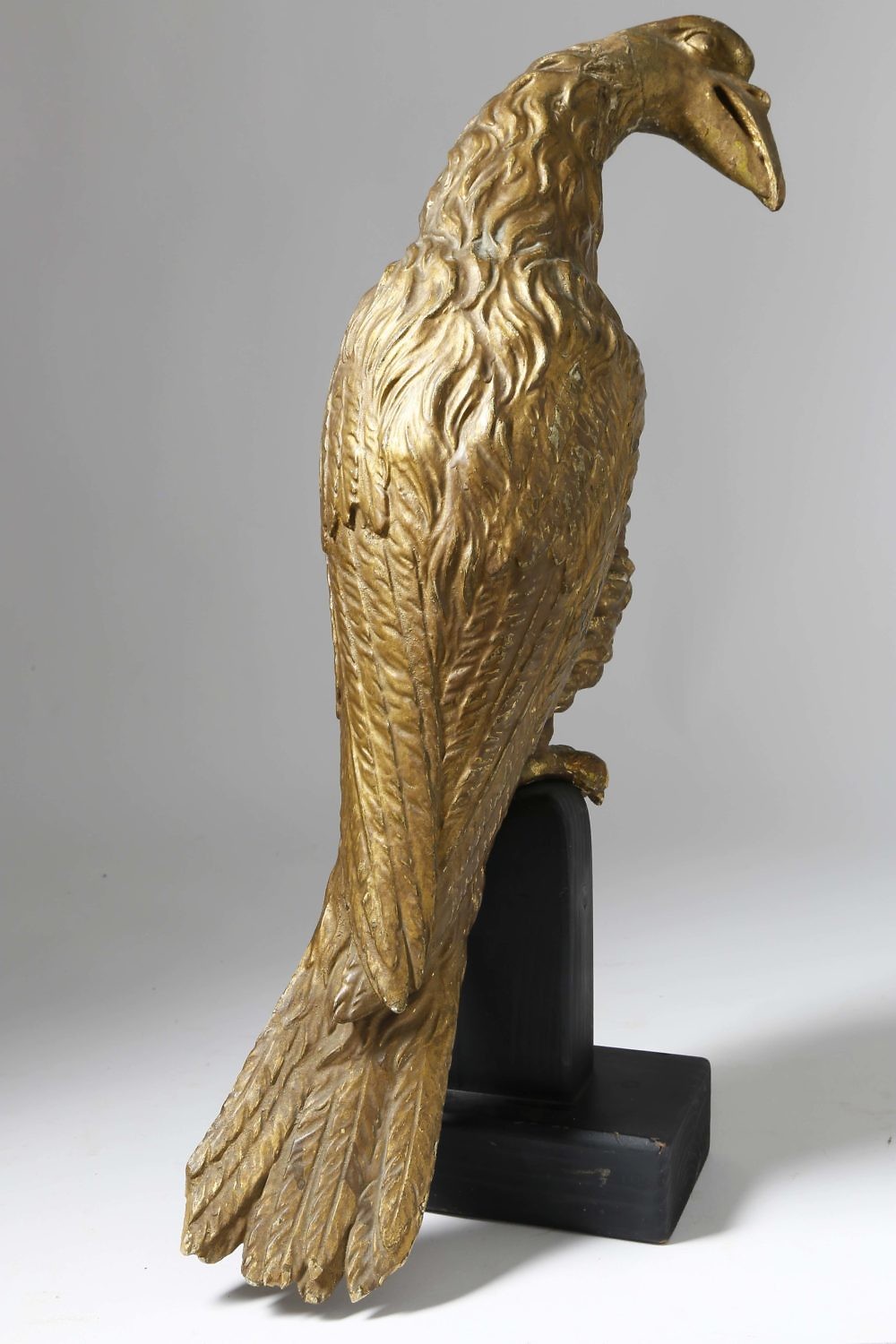 American Carved and Gilt Perched Eagle Consign Now DeptAmericana and Folk Arts, Furniture/Decorative ArtsSizeHeight 17 in. American Carved and Gilt Perched Eagle, circa 1800, standing with talons tightly grasping it’s perch and facing to the right Height 17 in. Please note that this auction has ended. Click here for an overview of this auction.