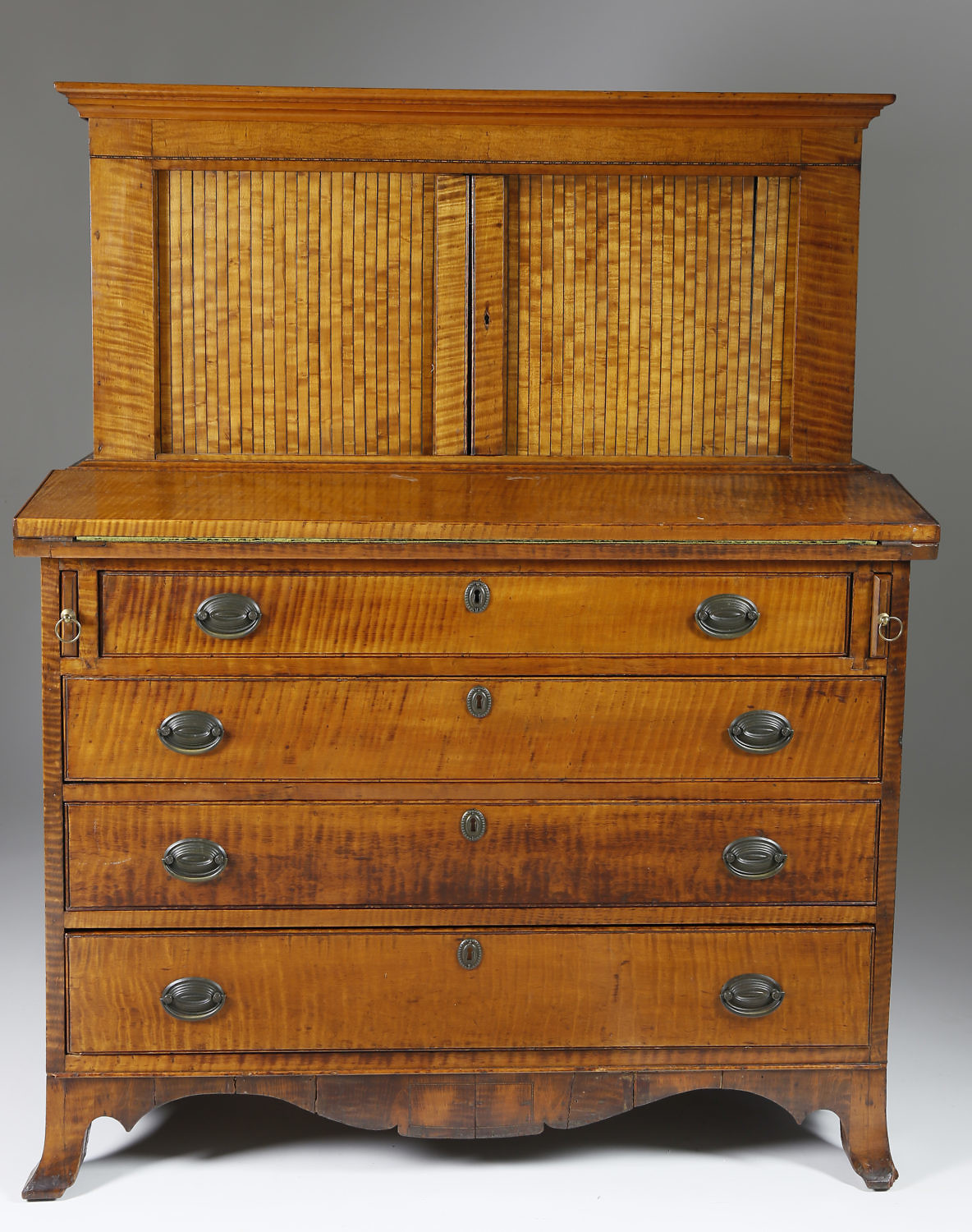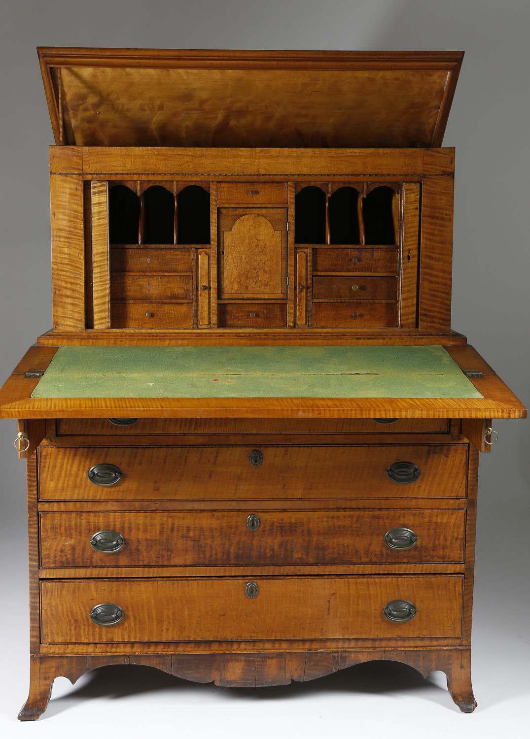 American Federal Tiger Maple and Cherrywood Writing Cabinet
