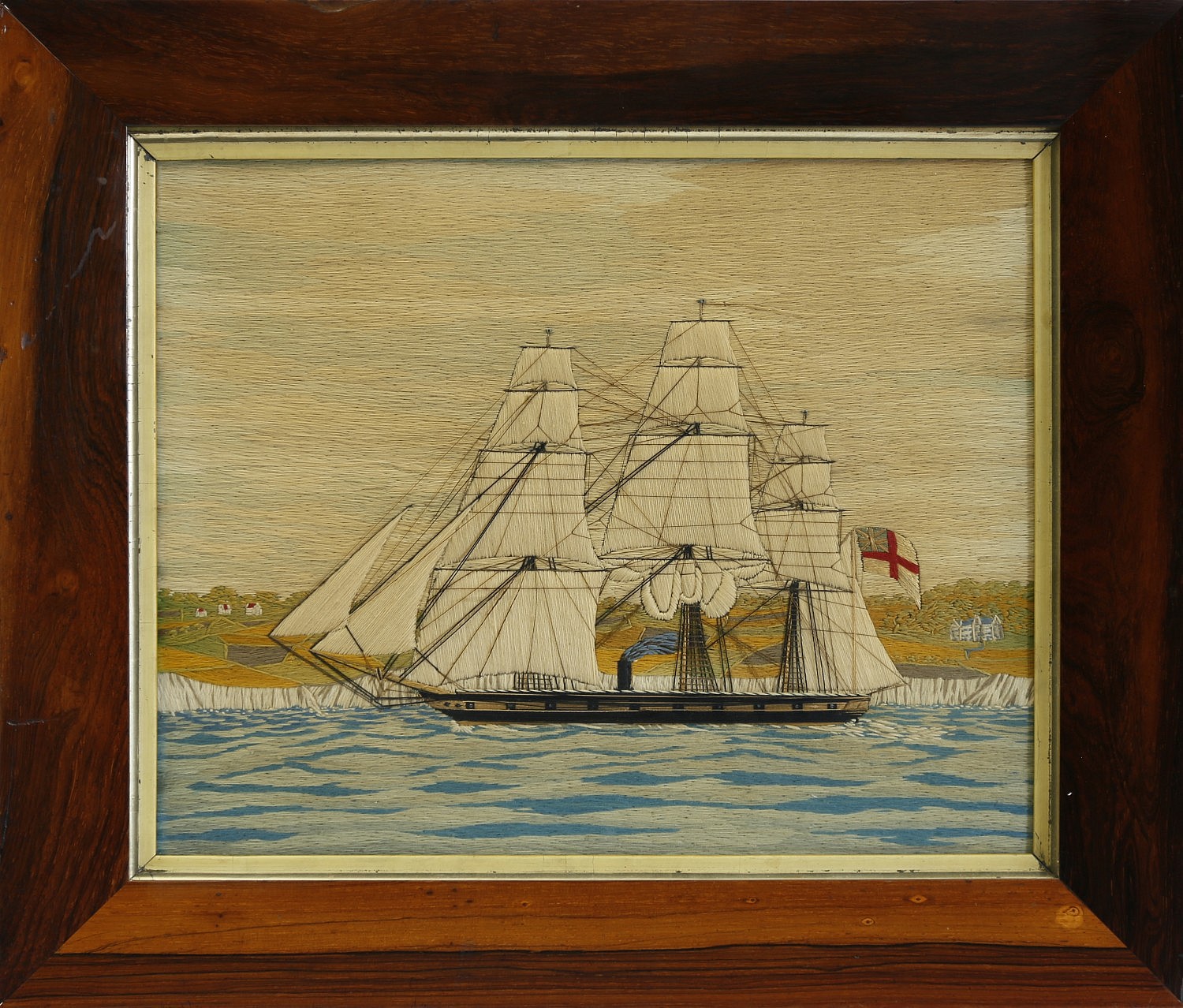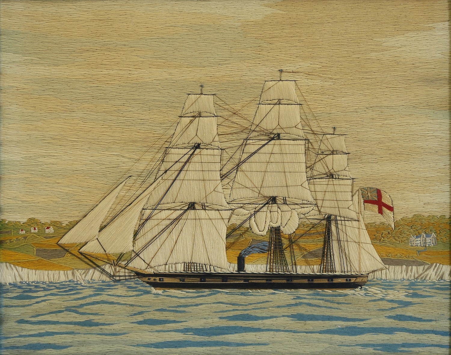 English Sailor’s Woolwork “Portrait of a Three-Mast Steam Sail Ship”