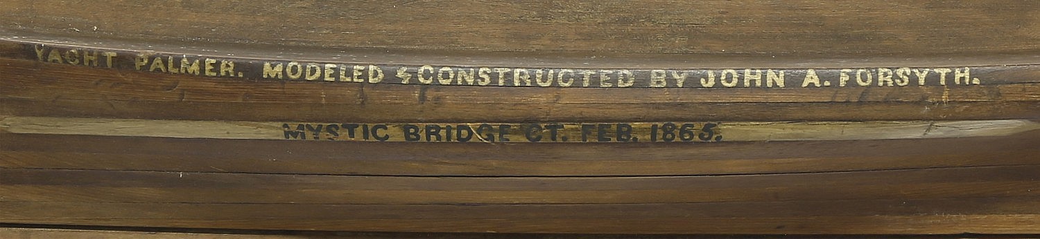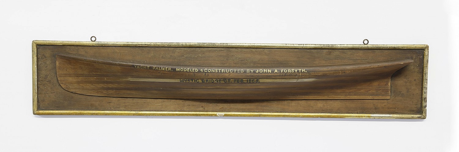 Fine 10-Lift Boat Makers Half Hull Model, circa 1865, Yacht Palmer constructed by, “John A. Forsyth”, Mystic Bridge, CT, Feb. 1865, mounted on original board with gilt border.