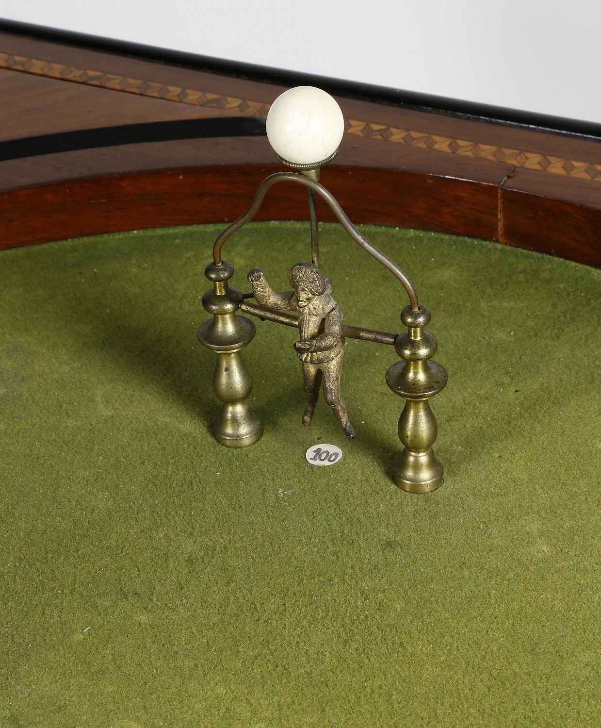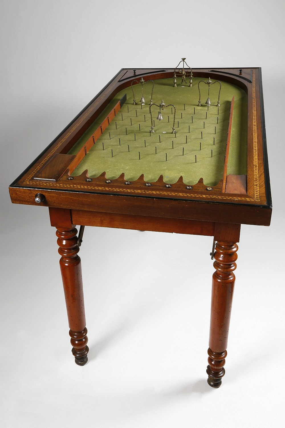 French Fruitwood Pinball Game, circa 1870 Consign Now DeptCollections, Furniture/Decorative ArtsSizeLength 51 ½ in. Width 28 in. French Fruitwood Pinball Game, circa 1870, inlaid border with 3 bell gates and figural extra ball gate, storage boxes at the corners, on turned folding legs with iron supports. Length 51 ½ in. Width 28 in. Please note that this auction has ended. Click here for an overview of this auction.