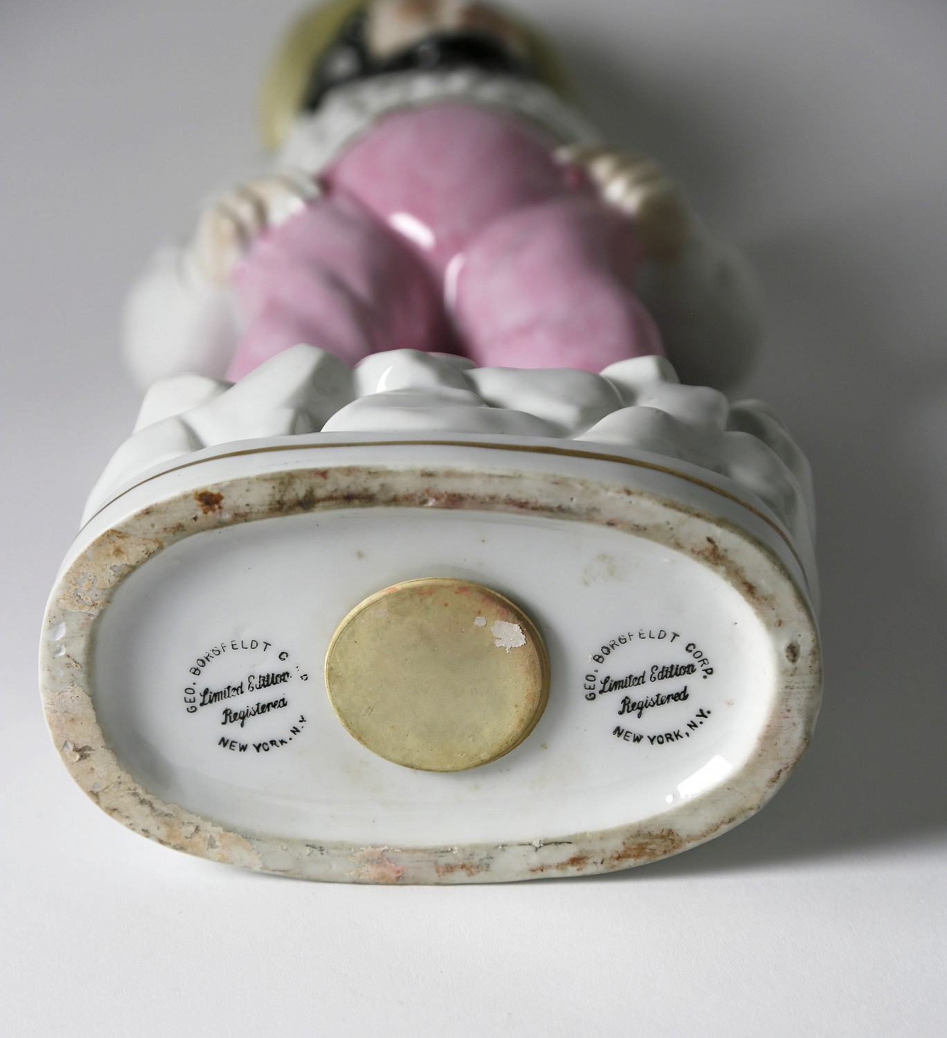 Porcelain Sailor Still Bank Consign Now DeptCeramics & GlassSizeHeight 14 in. Porcelain Sailor Still Bank, wearing pink pants and yellow hat, stamped Geo. Borgfeldt Corp. Limited Edition Registered, New York, New York. Height 14 in. Please note that this auction has ended. Click here for an overview of this auction.