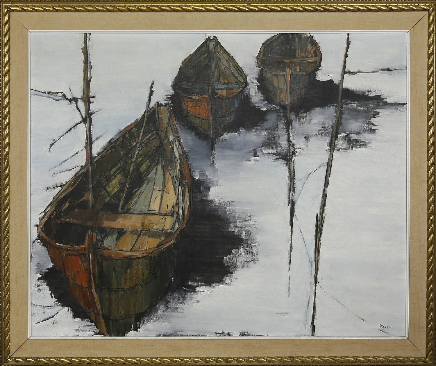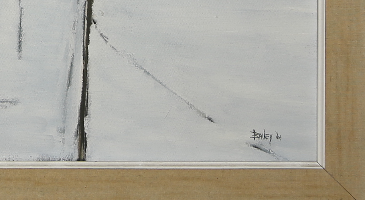 Roy Bailey Oil on Canvas “3 Dories” Consign Now DeptFine Arts, Maritime Arts, Nantucket ArtSize29 in. x 36 in. Overall 45 in. x 42 in. Roy Bailey (American 1933-2002) Oil on Canvas “3 Dories”, signed and dated lower right Bailey ’61 and titled on stretcher, gilt carved wood rope frame and mat. 29 in. x 36 in. Overall 35 in. x 42 in. Please note that this auction has ended. Click here for an overview of this auction.