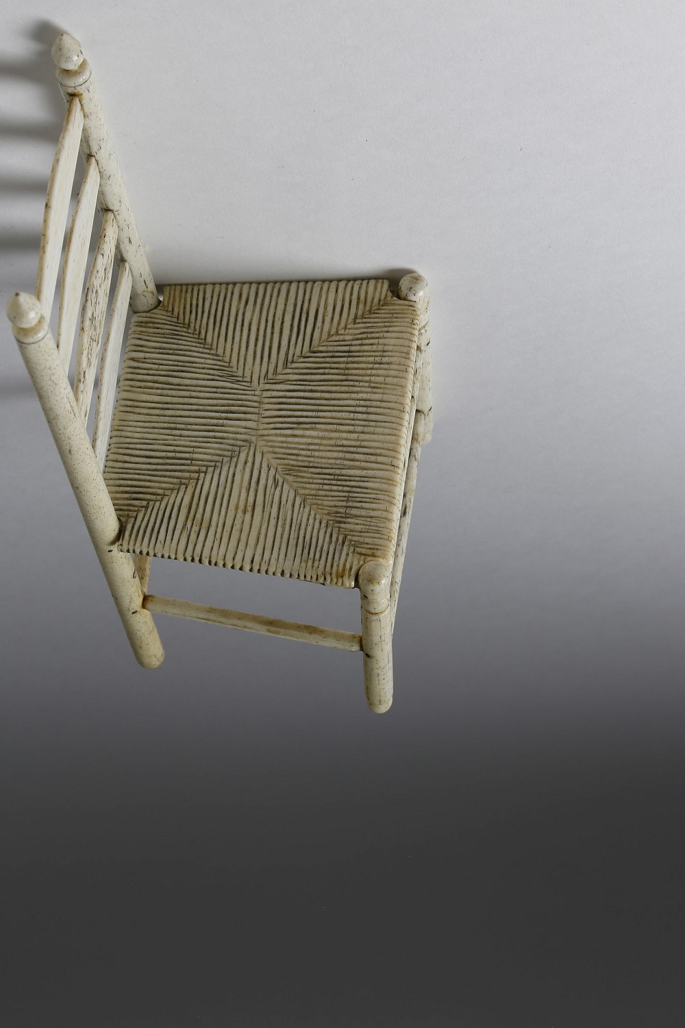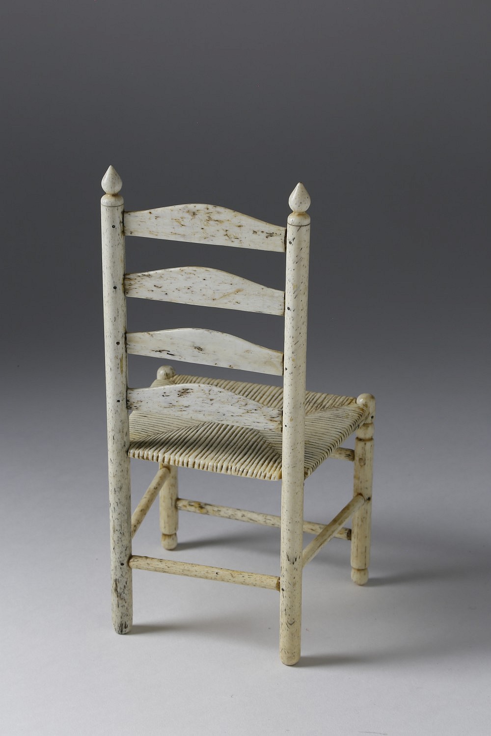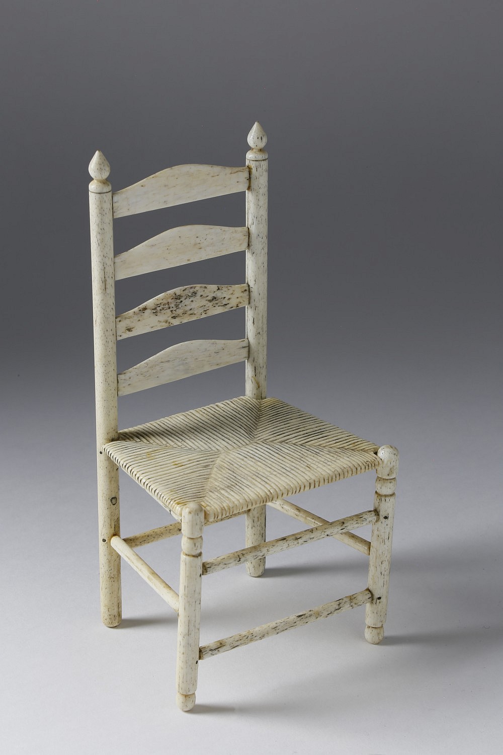 Scarce Whaleman Made Whalebone Ladderback Rush Seat Miniature Side Chair, circa 1840,