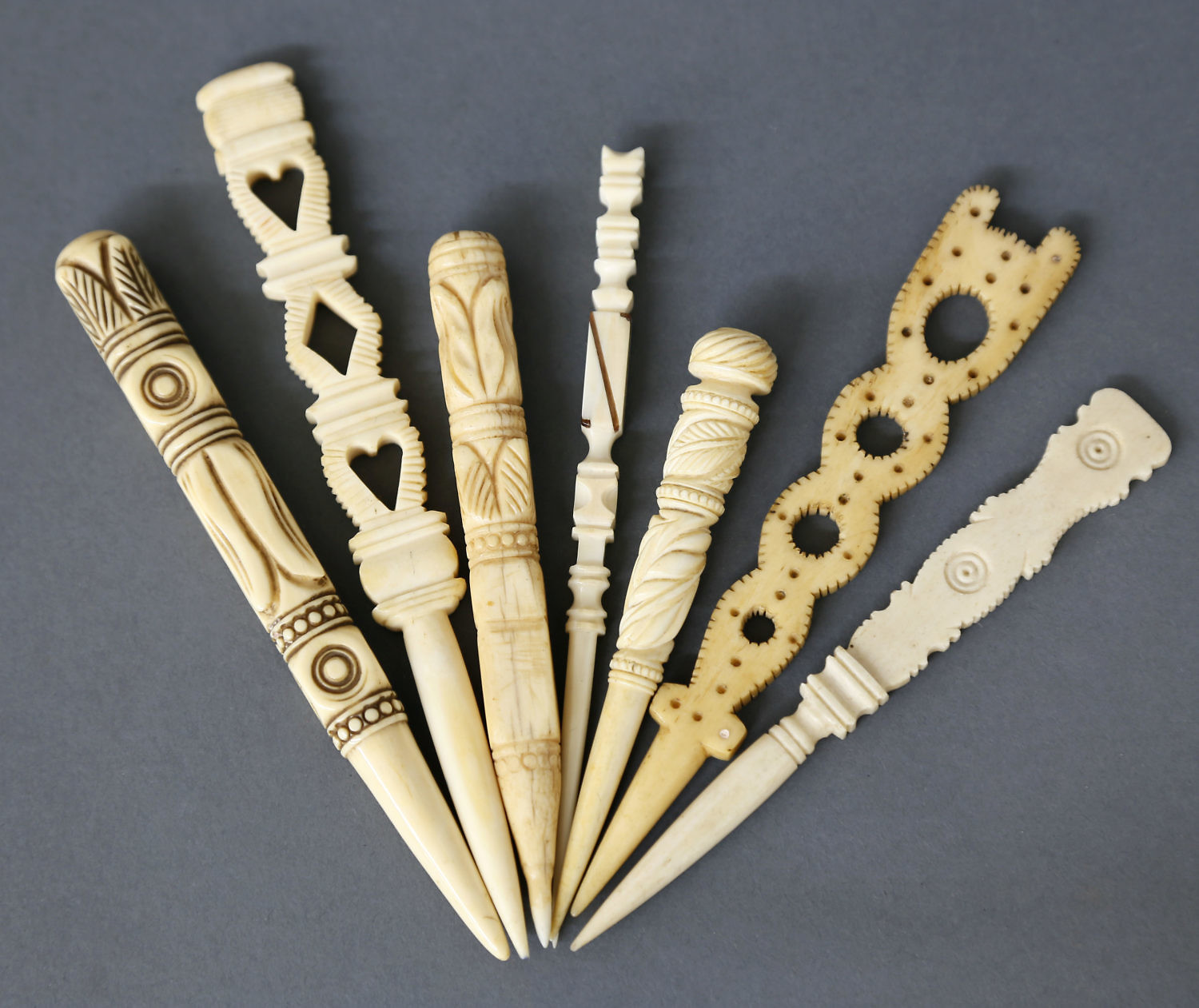 Seven Assorted Whaler Carved Ivory Bodkins