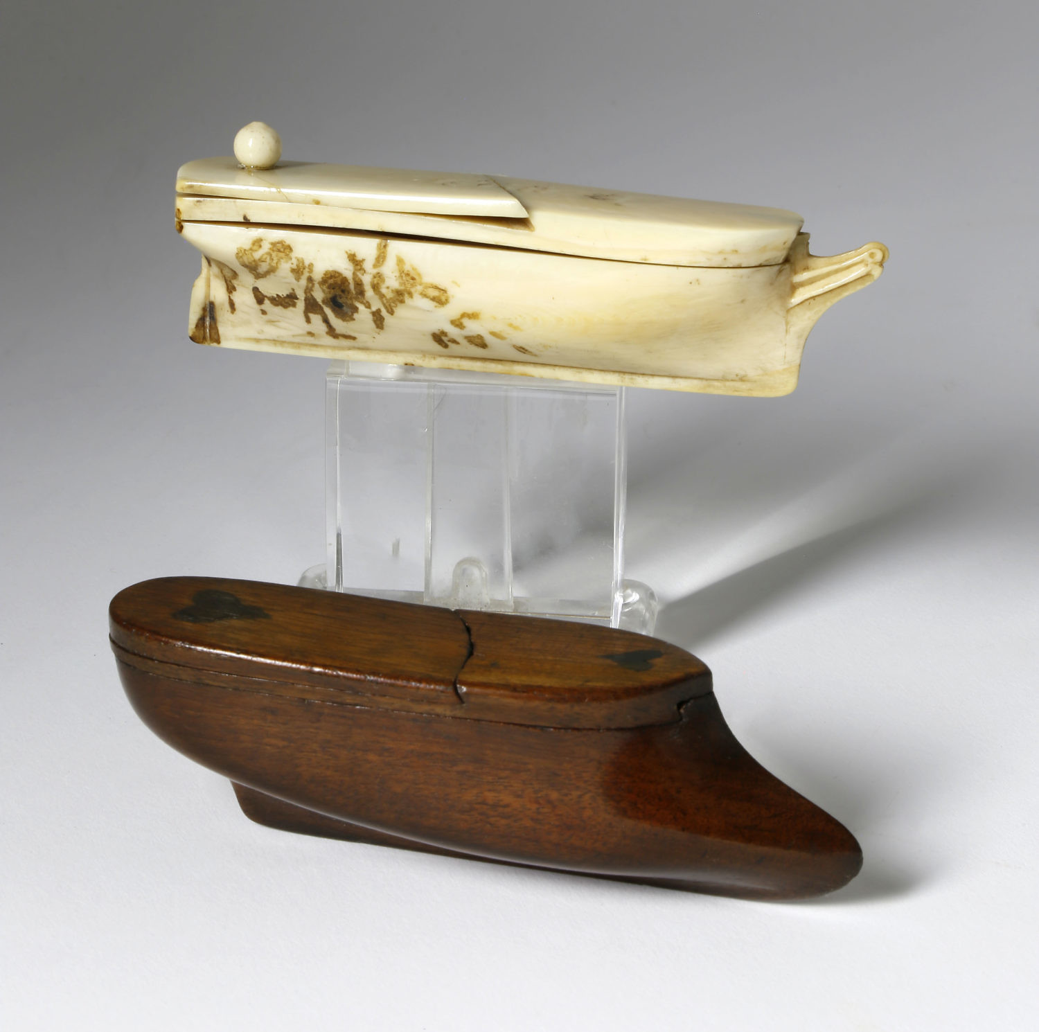 Two Whaler Made Puzzle Snuff Boxes Consign Now Dept19th Century Scrimshaw, Furniture/Decorative ArtsSizeLength 5 in. Two Whaler Made Puzzle Snuff Boxes, circa 1840-60, the ivory box carved out of a single sperm whale tooth in the form of a whaleship, the wood box in the form of a ship with two heart inlays. Length 5 in. Please note that this auction has ended. Click here for an overview of this auction.