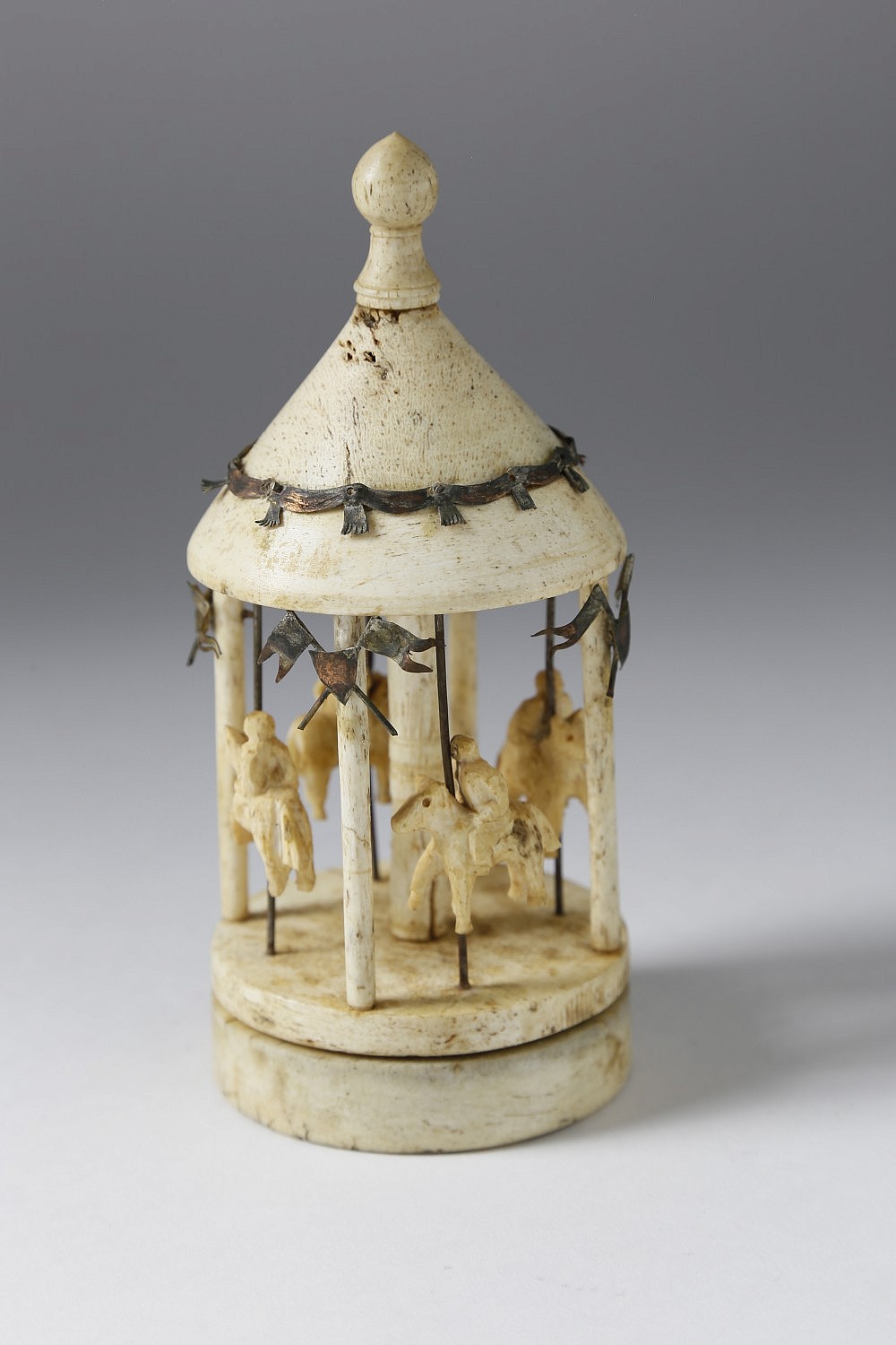 Whaleman Carved Whalebone Rotating Toy Carousel, 19th century,