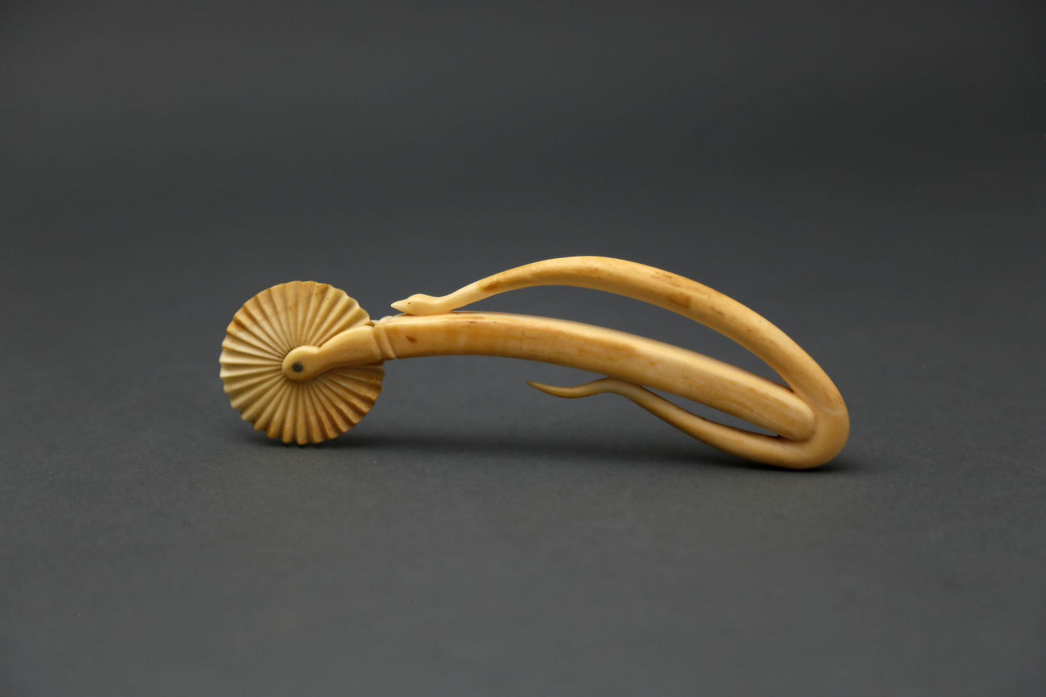 Whaler Carved Whale Ivory Pie Crimper Consign Now Dept19th Century ScrimshawSizeLength 6 ¼ in. Whaler Carved Whale Ivory Pie Crimper, circa 1840-60, a solid zigzag wheel on a simple single piece of ivory arched grip with a delicate curious serpent approaching the wheel and the rest of its body trails under the grip. Length 6 ¼ in. Please note that this auction has ended. Click here for an overview of this auction.