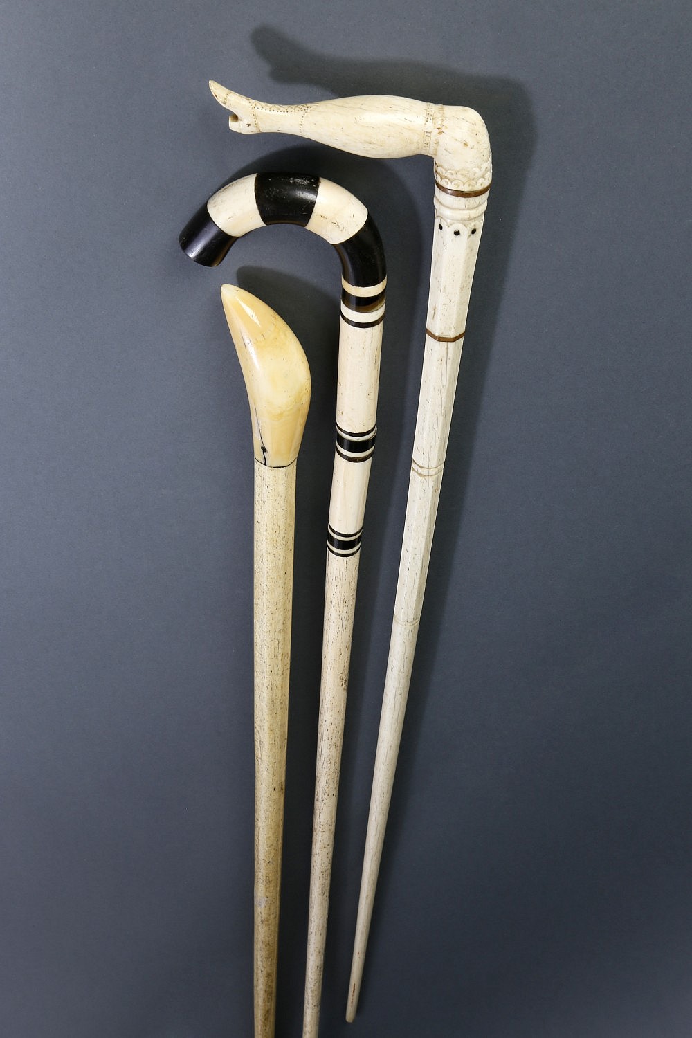 Three Whaler Made Whale Ivory and Whalebone Walking Sticks