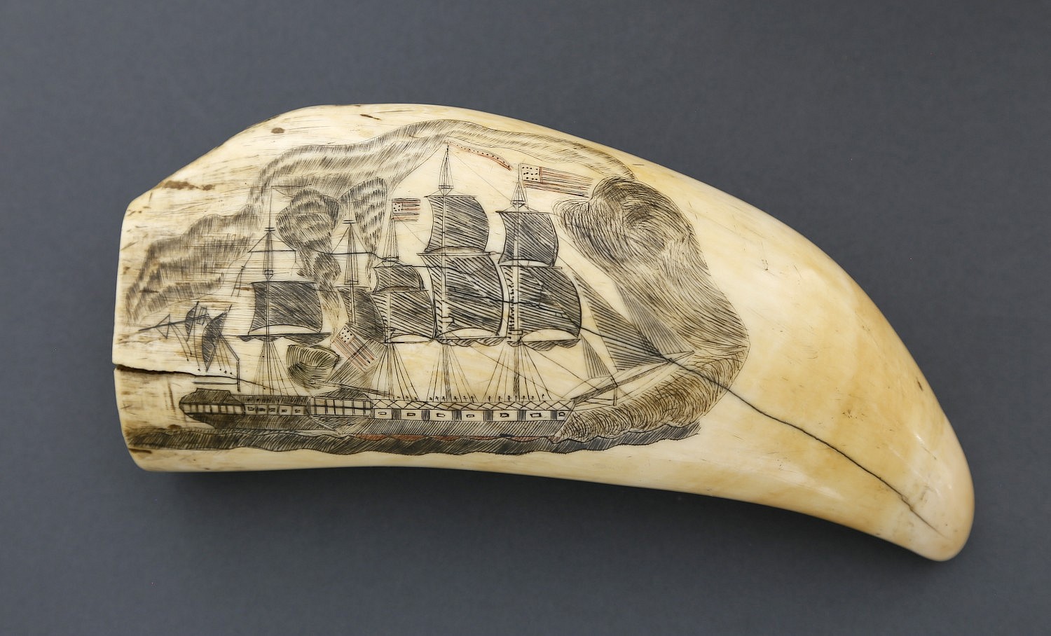 Whaleman Polychrome Scrimshaw Sperm Whale Tooth