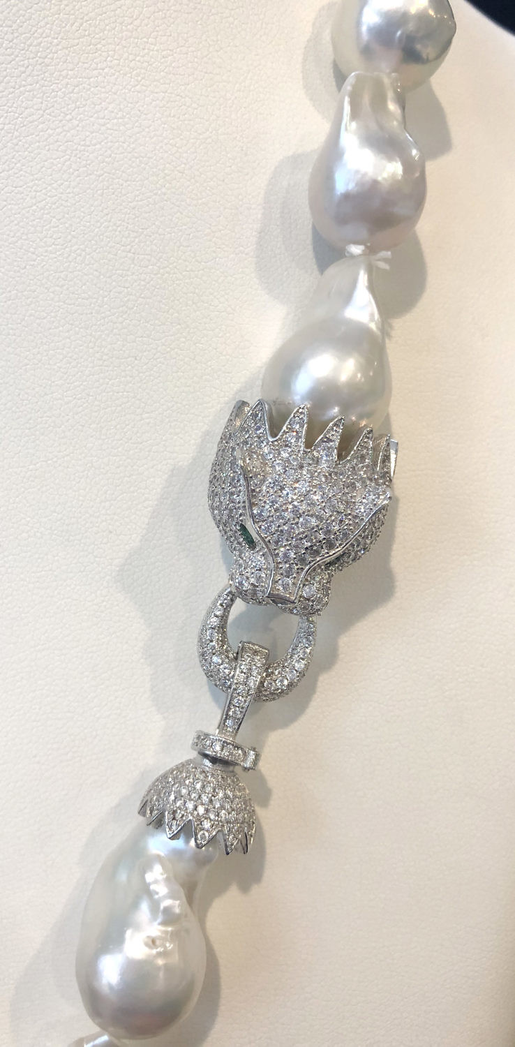 15mm x 22mm White Baroque Cultured Fresh Water Pearl Necklace Consign Now DeptJewelrySizeLength 32 in. 15mm x 22mm White Baroque Cultured Fresh Water Pearl Necklace, silver CZ cat head clasp. Length 32 in. Please note that this auction has ended. Click here for an overview of this auction.