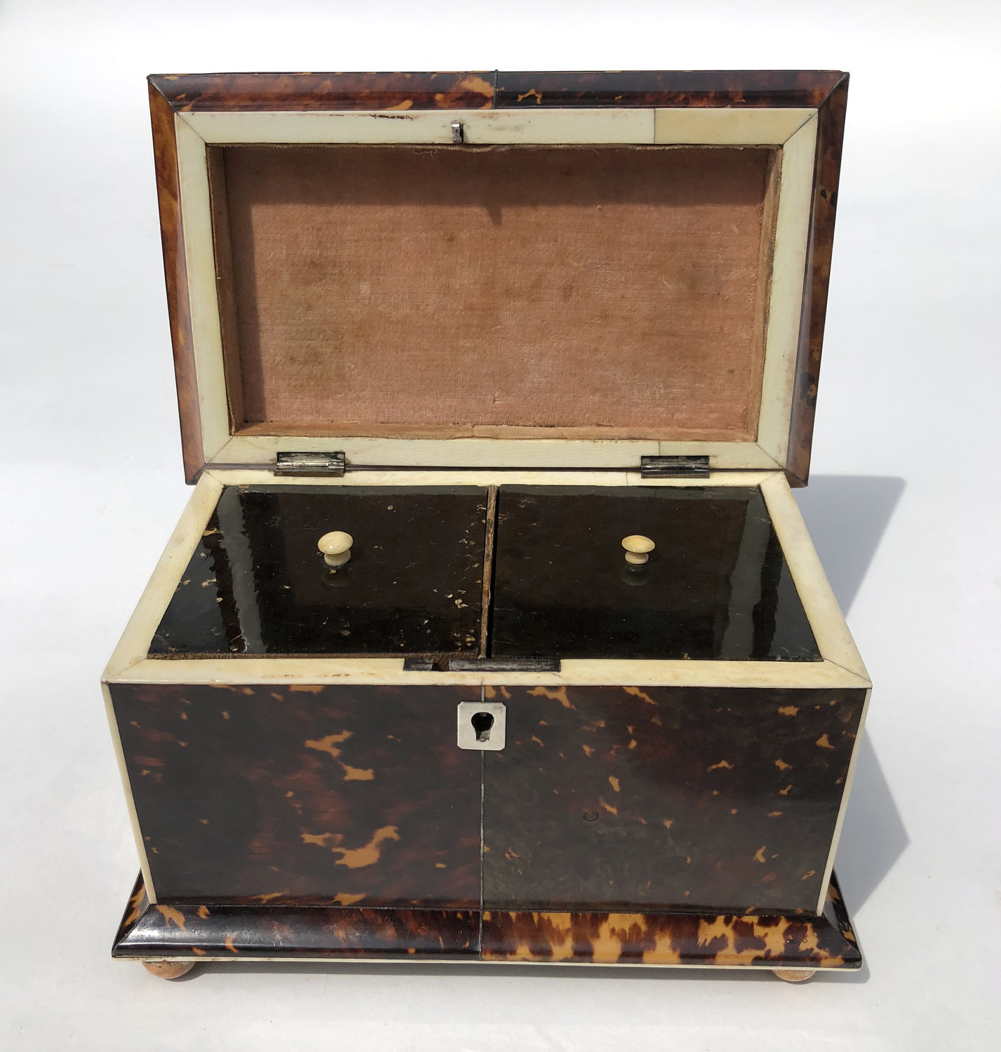 English Regency Tortoiseshell Double Compartment Tea Caddy