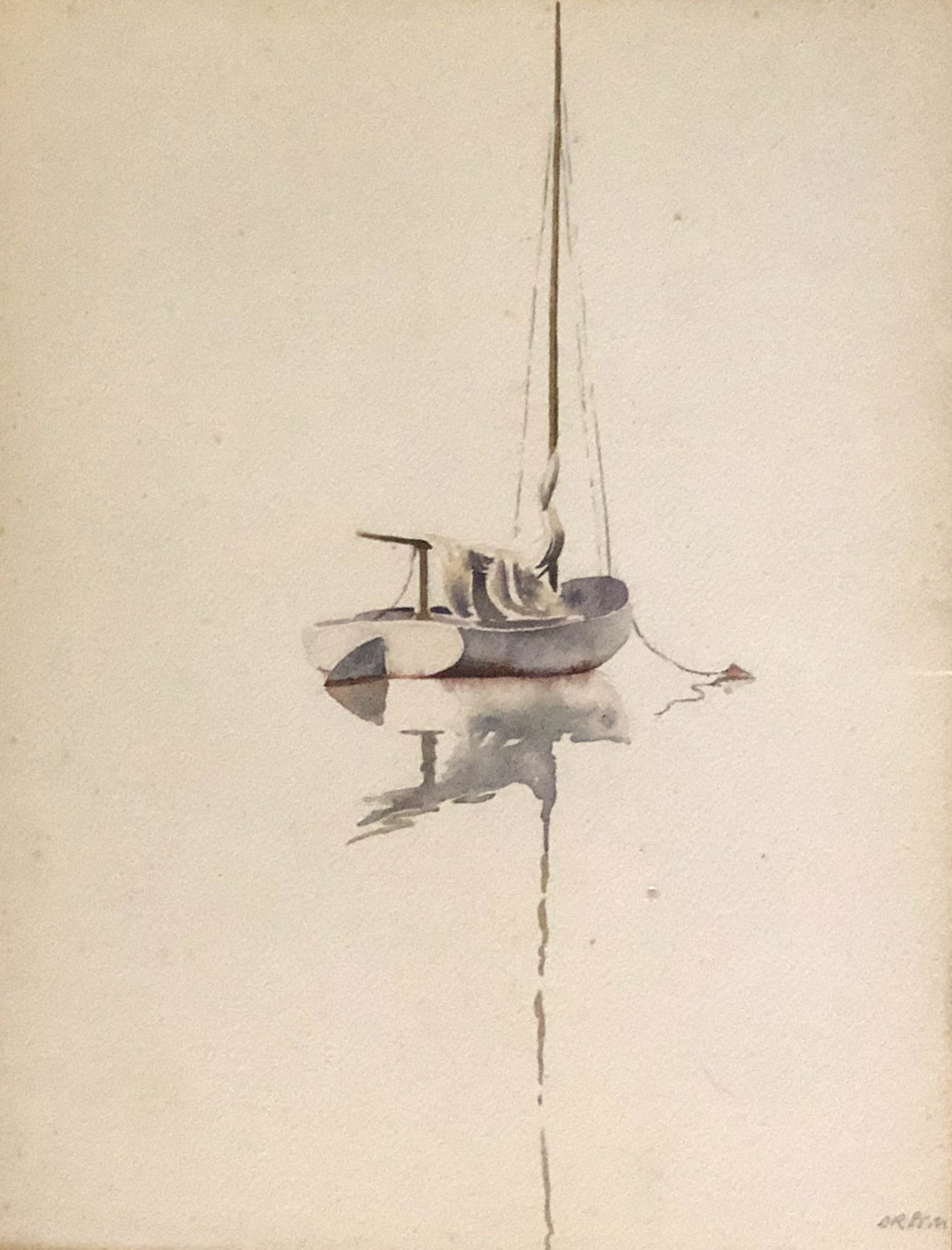 Doris and Richard Beer Watercolor on Paper “Lone Catboat”
