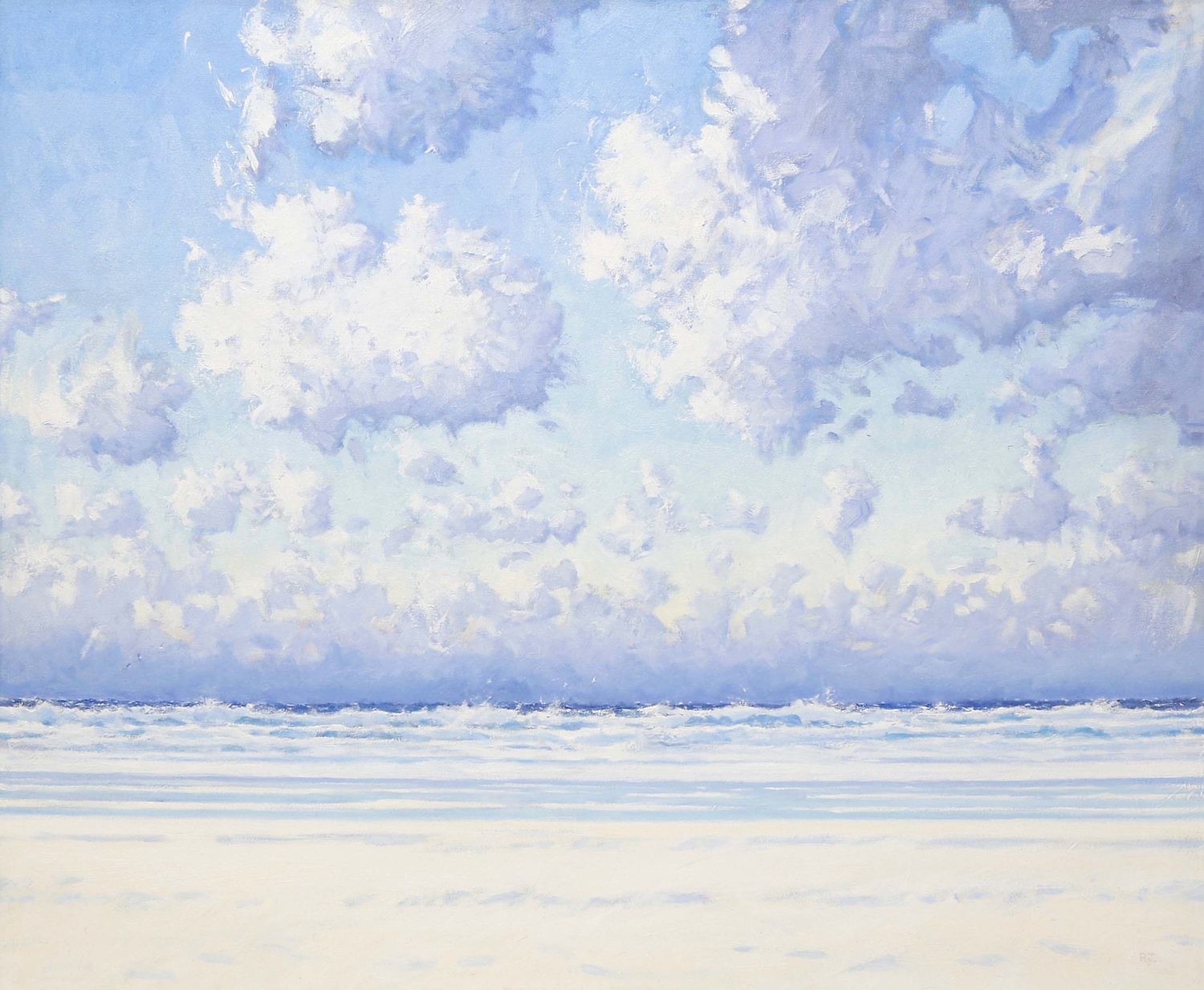 Robert Jones (b. Cornwall 1947) Oil on Canvas “Summer Beach, Surfside”, initialed lower right.