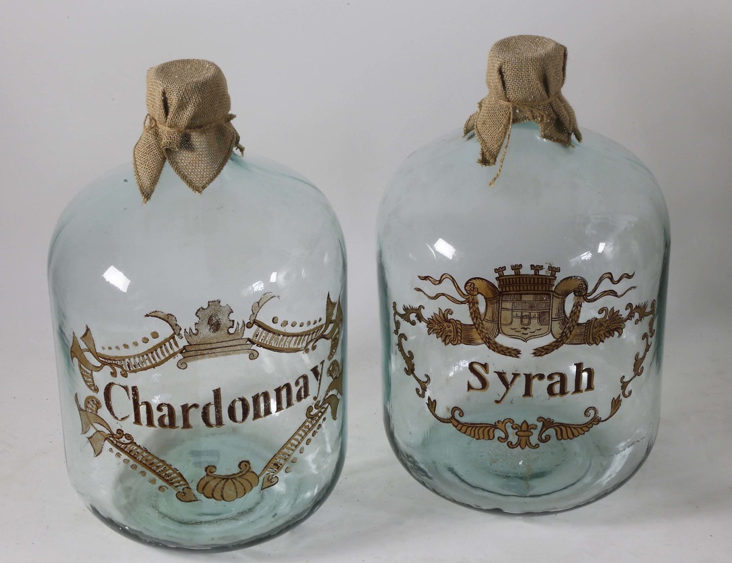Pair of Glass Wine Bottles, Chardonnay and Syrah