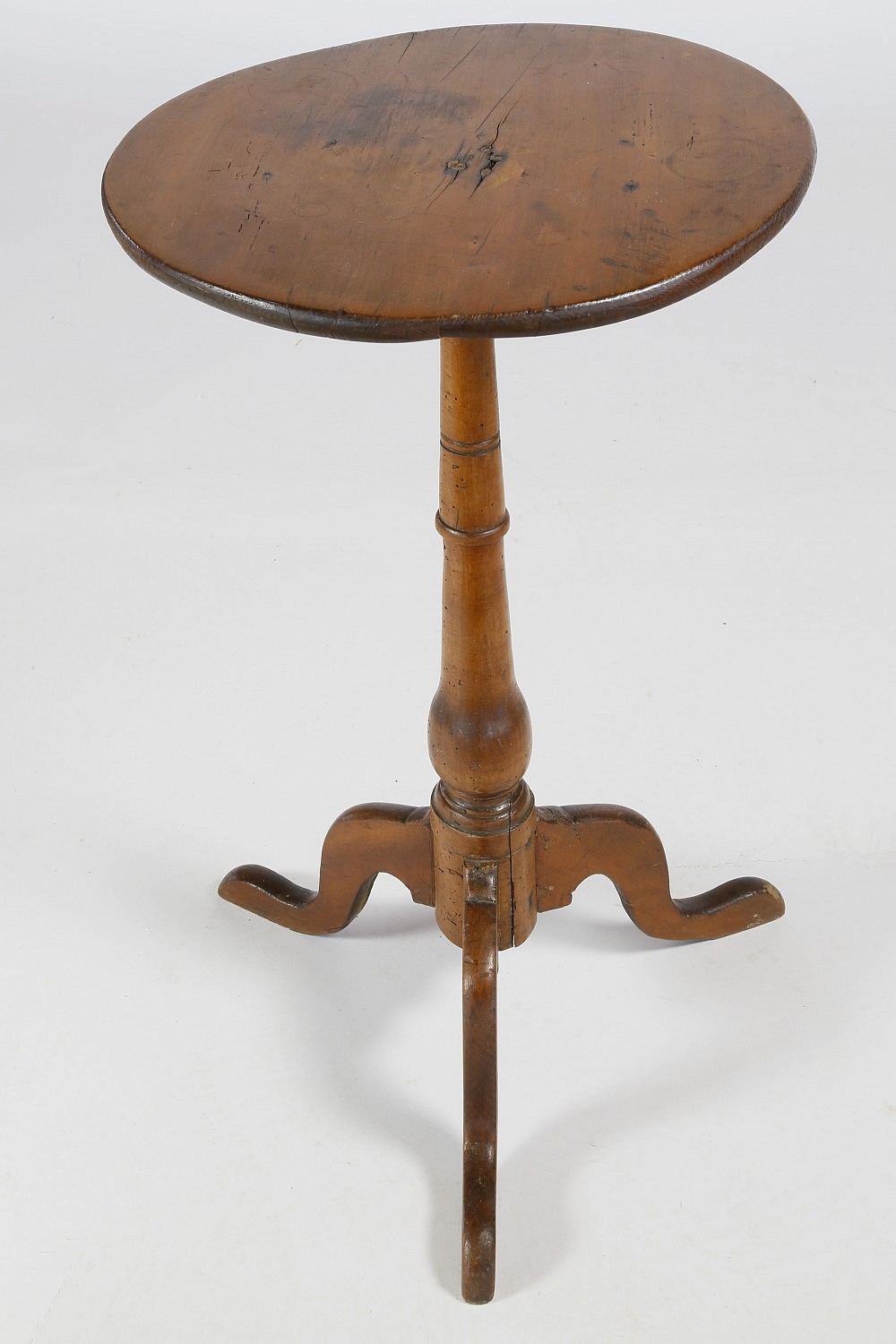 18th c. American Maple Candlestand on Tripod Base Ending in Snake Foot
