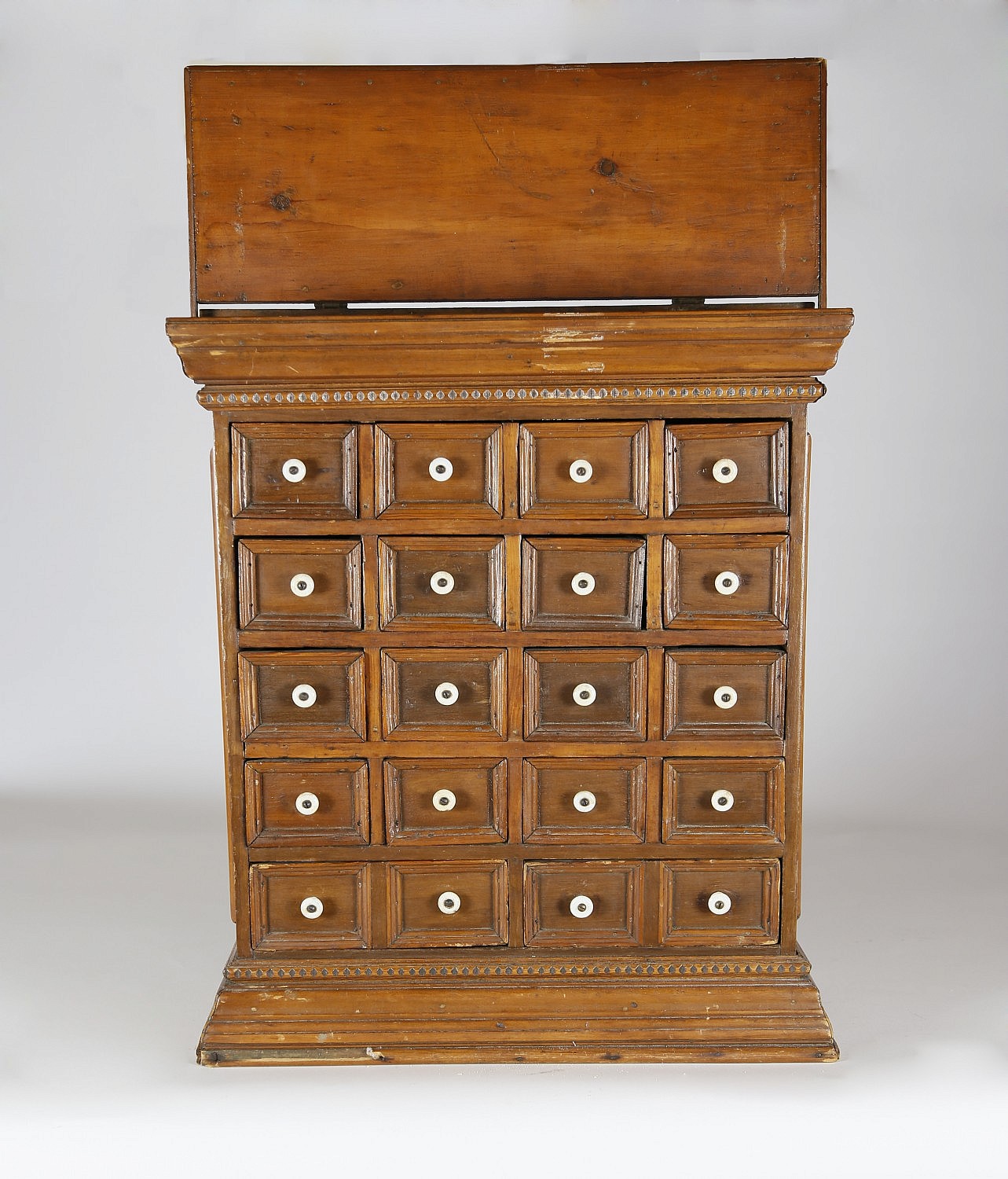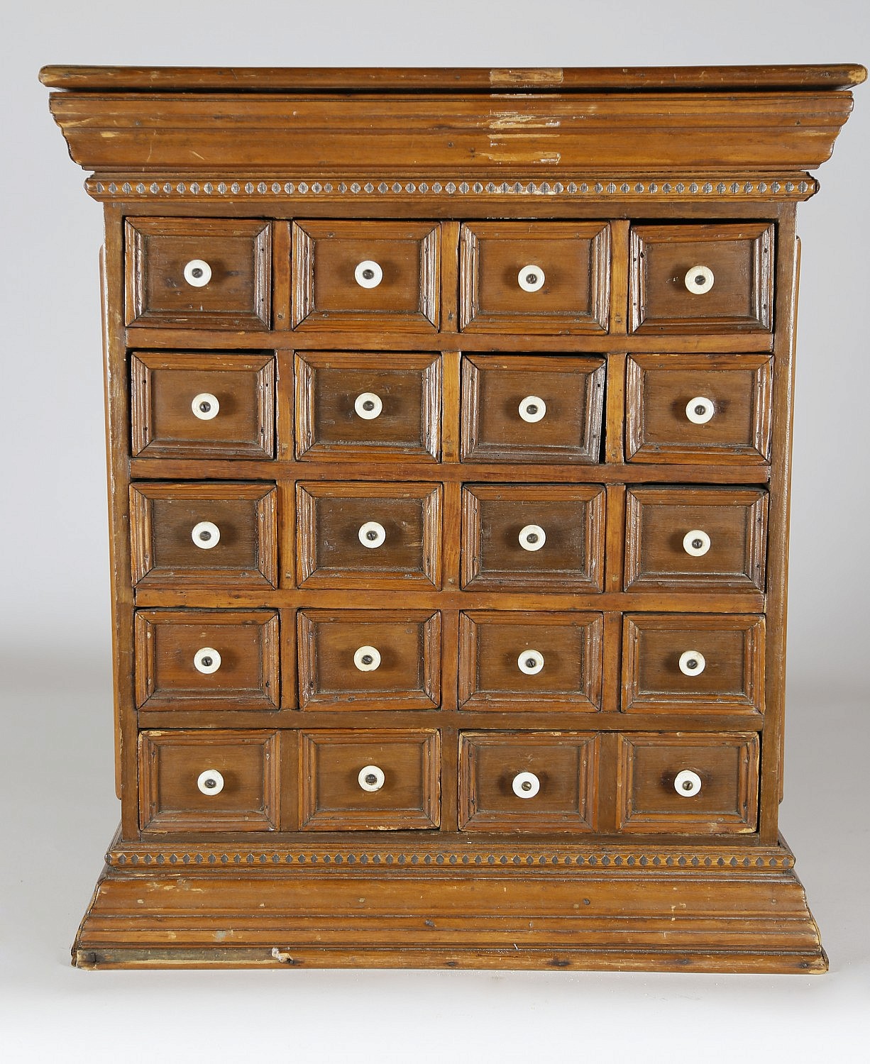 19th Century English Pine Watchmaker’s Cabinet of 16-Drawers Over 2 Faux Double Drawers Consign Now DeptFurniture/Decorative ArtsSizeHeight 25 in. Width 22 in. Depth 9 in. 19th Century English Pine Watchmaker’s Cabinet of 16-Drawers Over 2 Faux Double Drawers, white porcelain knobs, lid lifts to reveal storage section Height 25 in. Width 22 in. Depth 9 in. Please note that this auction has ended. Click here for an overview of this auction.