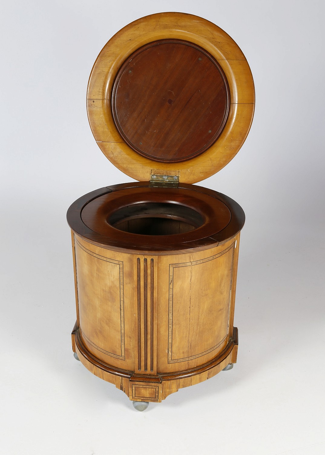 19th Century English Satin Wood Band Inlaid and Fluted Lift Top Round Potty Consign Now DeptFurniture/Decorative Arts 19th Century English Satin Wood Band Inlaid and Fluted Lift Top Round Potty with green leather top on casters Please note that this auction has ended. Click here for an overview of this auction.