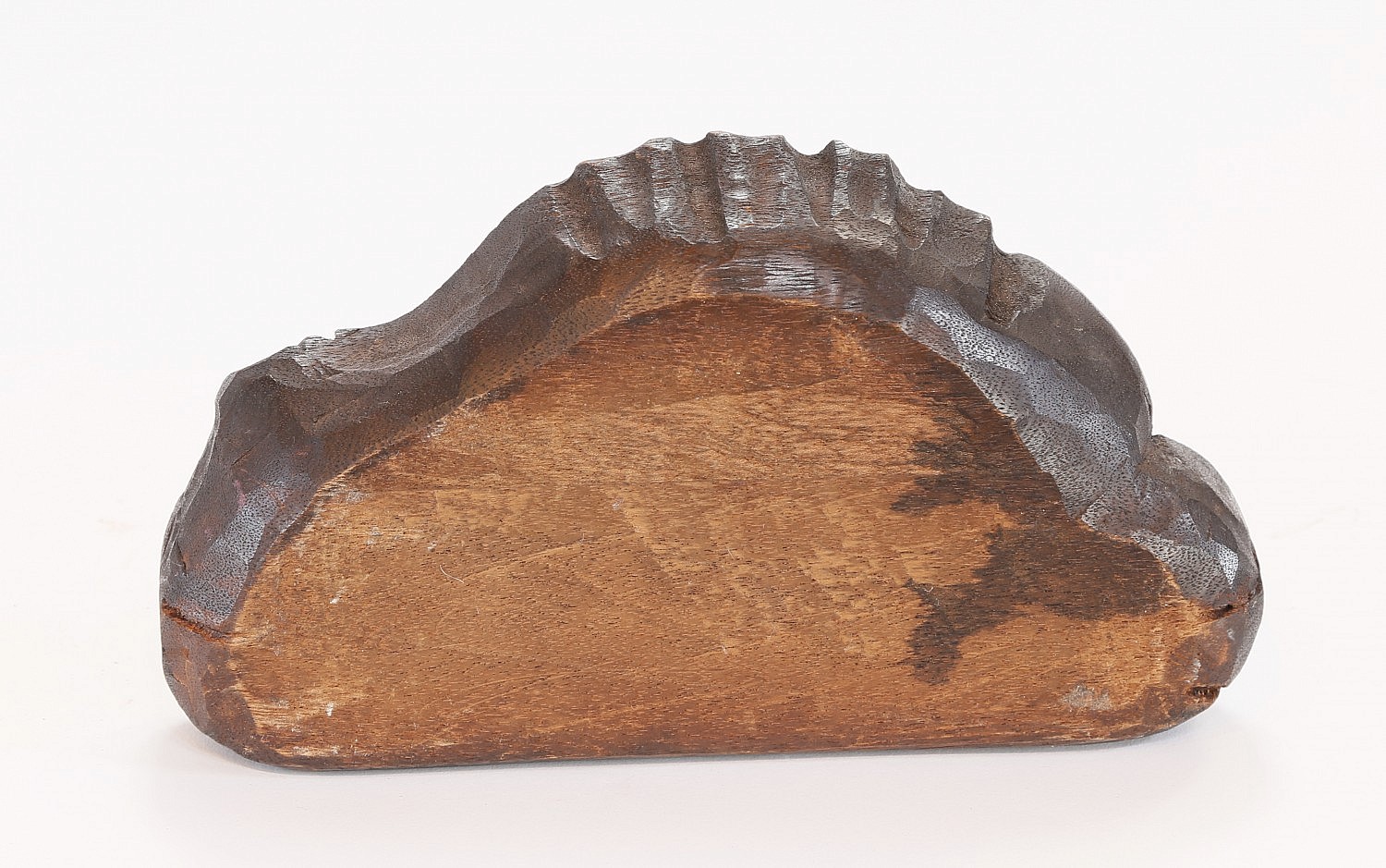 Continental Hand Carved Wood Sculpture of a Maiden Sitting on a Wave and Holding a Shield