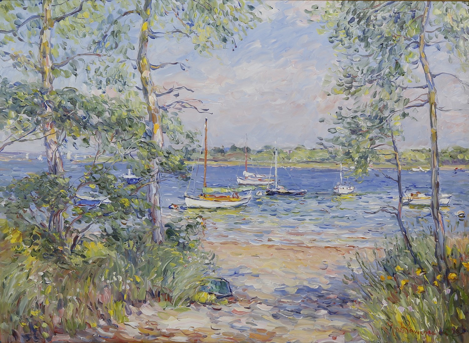 Jan Pawlowski Oil on Canvas “Sailboats Moored in Polpis Harbor” Consign Now ArtistJan Pawlowski (Polish-American, Contemporary)Click here for artist bioDeptFine Arts, Nantucket ArtSize30 in. x 40 in. Overall 38 in. x 48 ½ in. Jan Pawlowski (Massachusetts/Poland b. 1949) Oil on Canvas “Sailboats Moored in Polpis Harbor”, signed lower right Jan Pawlowski ’98, gilt frame 30 in. x 40 in. Overall 38 in. x 48 ½ in. Please note that this auction has ended. Click here for an overview of this auction.