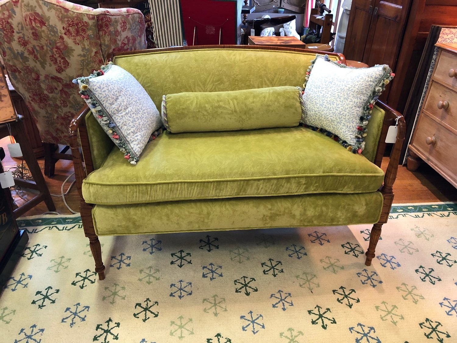 July 13 Auction Preview 41 Consign Now July 13 Auction Preview 41 Lot 150: Federal Style Faux Tiger Maple Settee with green velvet upholstery Height 43 in. Length 49 in. Depth 30 in. Please note that this auction has ended. Click here for an overview of this auction.